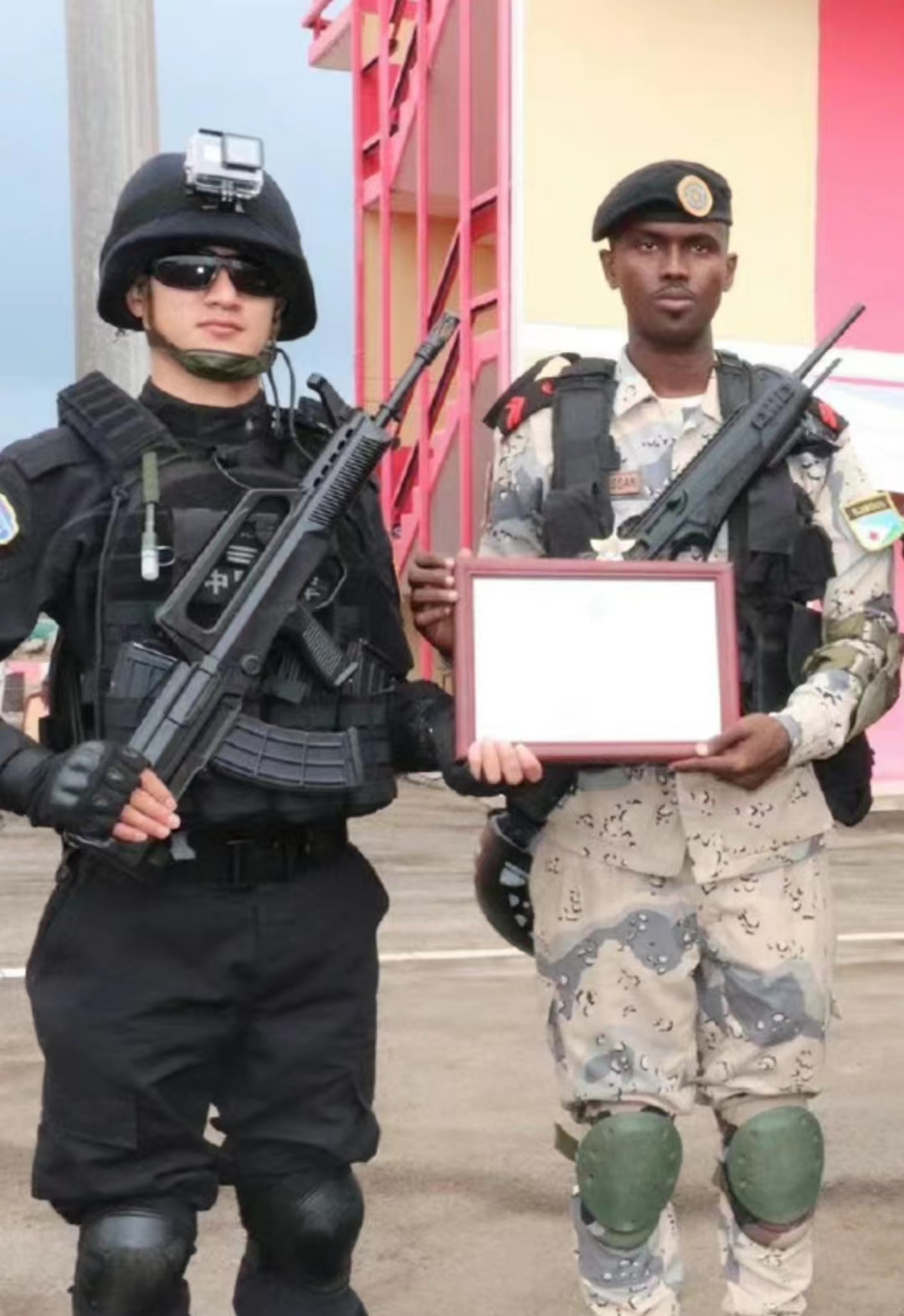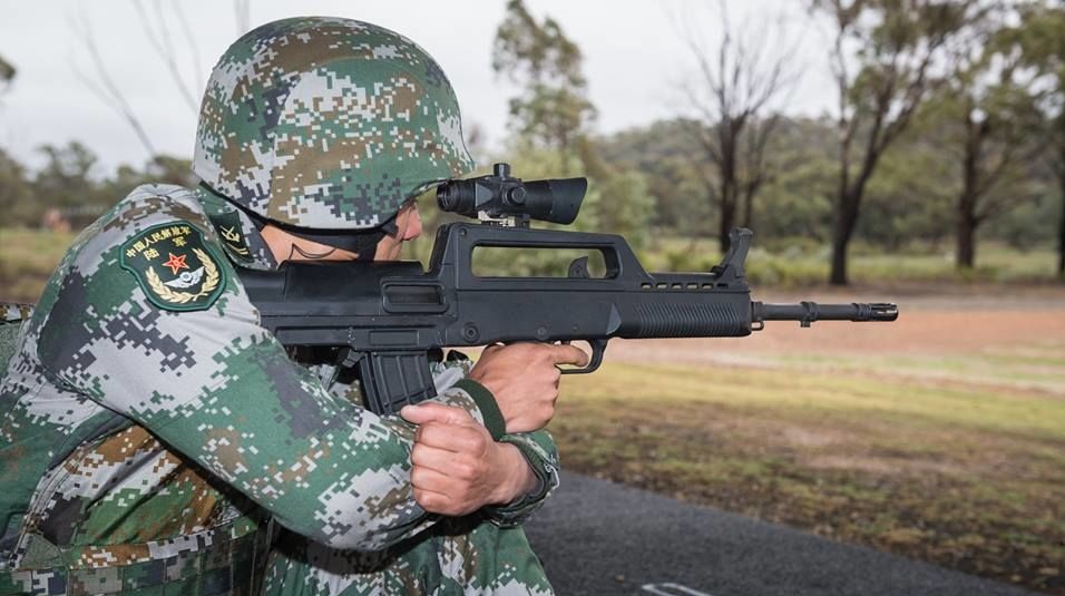 在2013年澳大利亚举办的轻武器技能比赛上,澳洲参赛队员在交流活动中试射中方参赛队员的QBZ95-1