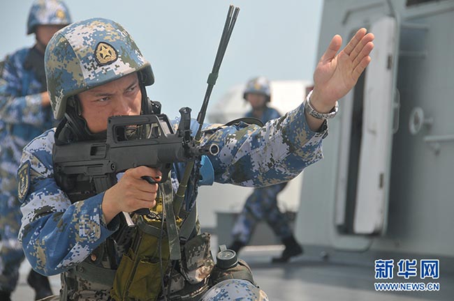2014年1月南海舰队在为亚丁湾护航进行演习时,海军陆战队使用了QBZ95B-1短自动步枪