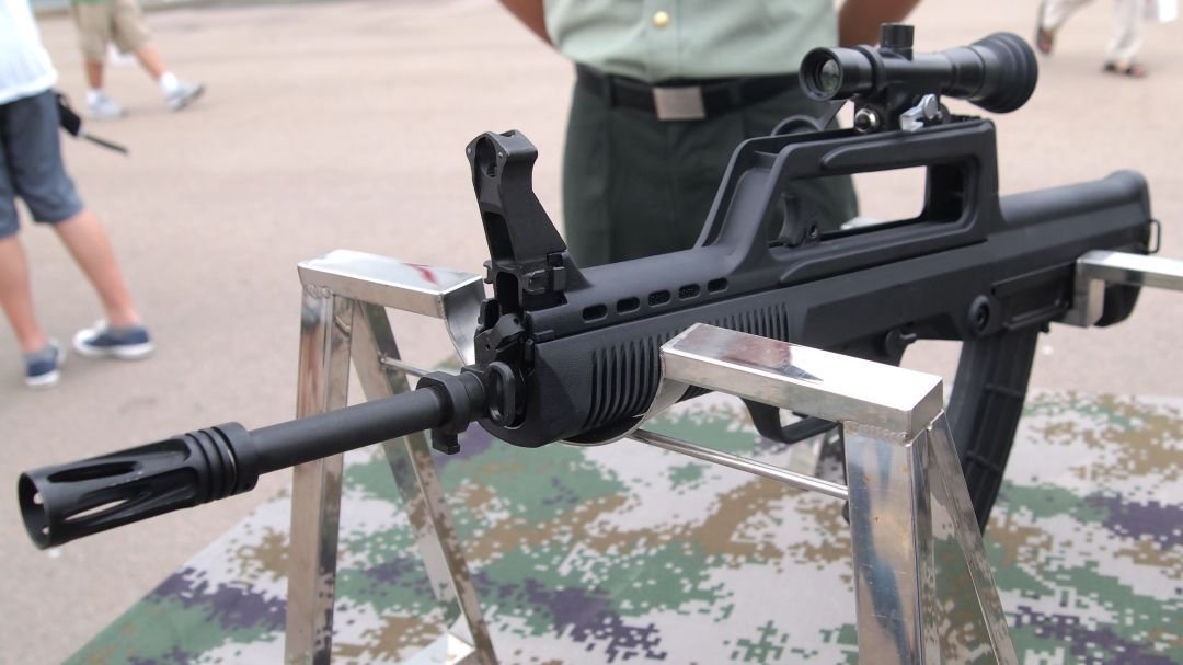 2014年7-1香港军营开放日上展出的QBZ95-1式自动步枪及配套的QLG10A式榴弹发射器(狂战士提供)