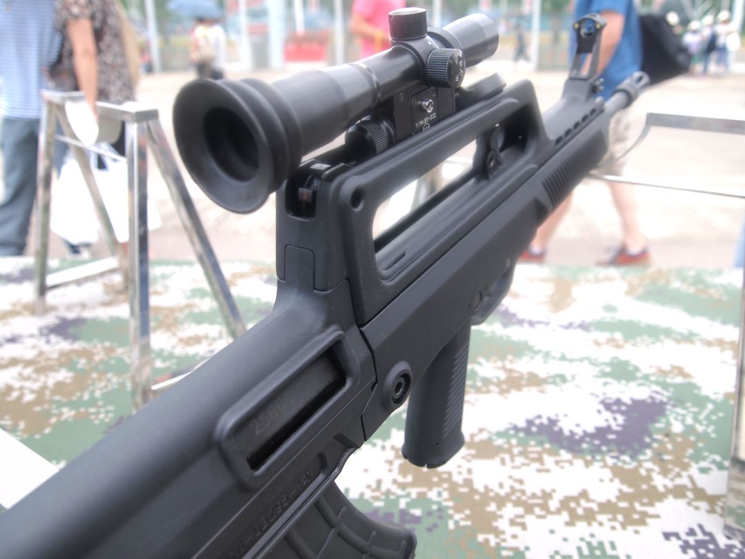 2015年参加文莱国际武器实用技能比武(BISAM)上,中国队使用的步枪是由95-1枪族,其中用来打狙击项目的是由QJB95-1轻机枪充当DMR步枪