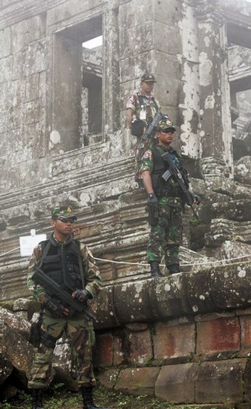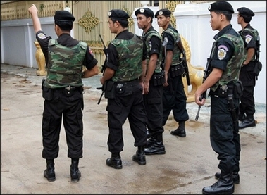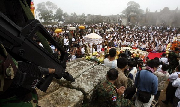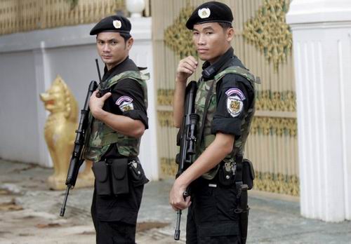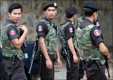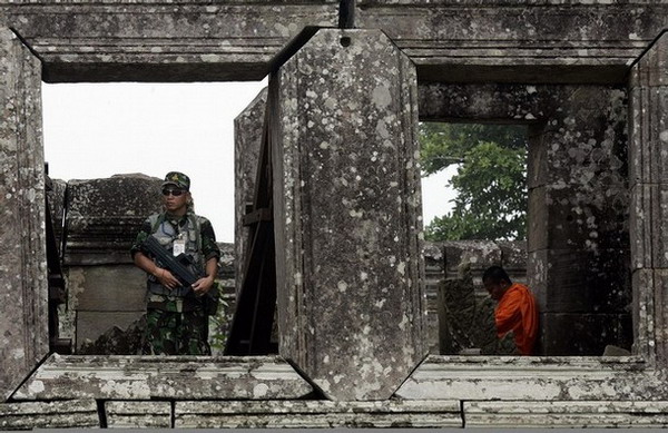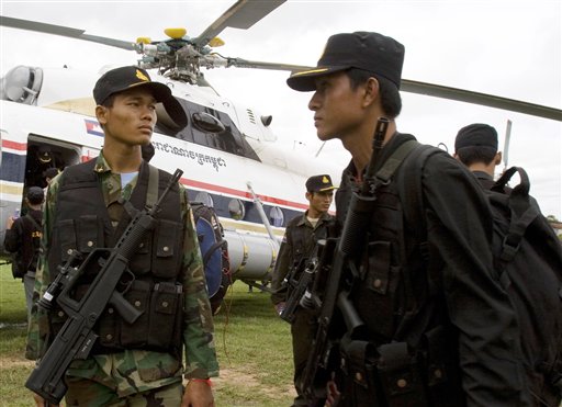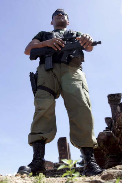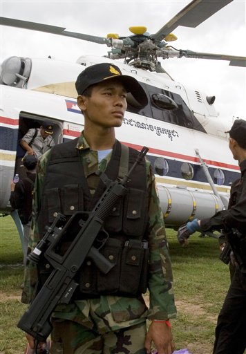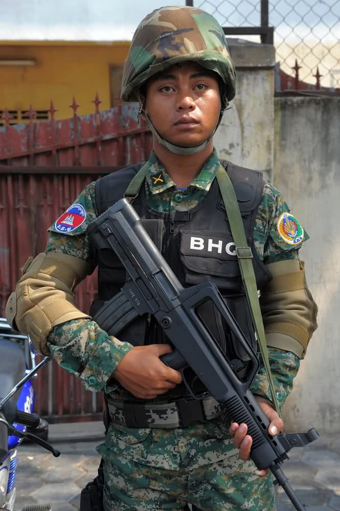 一名装备中国97/97A式步枪的柬埔寨士兵正准备出发执行搜救任务,一架载有22人的安24飞机07年6月26日因为暴风雨在柬埔寨南部失踪。这枪可能是出口的,也可能是援助的。