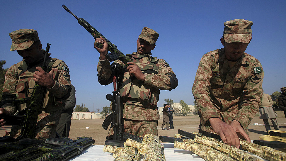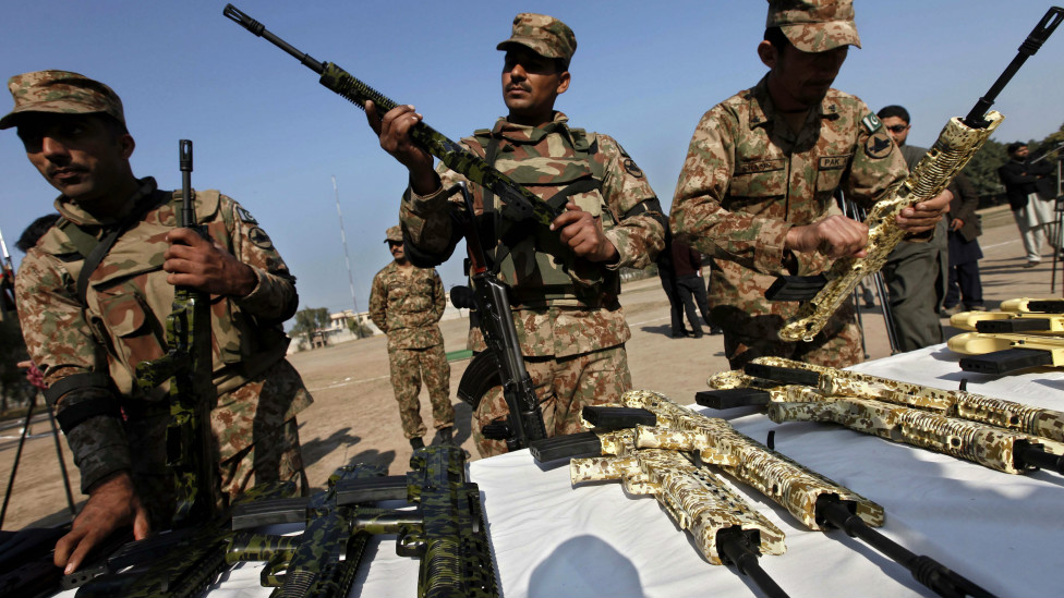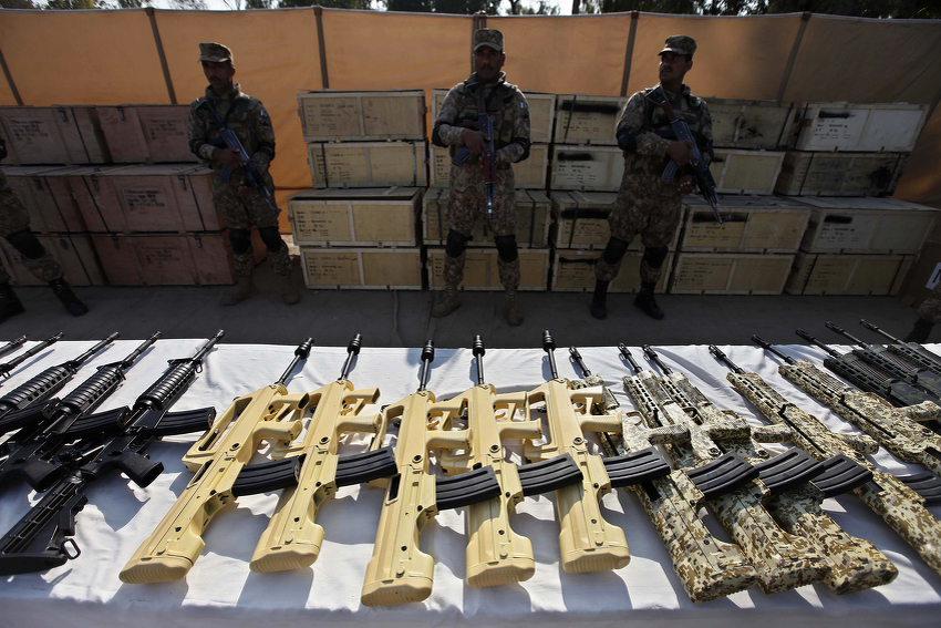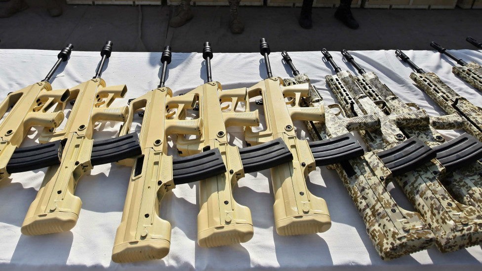 2016年1月27日,巴基斯坦白沙瓦展示缴获的走私枪支,都是针对北美和欧洲市场的民用型,包括T97NSR、T97BSN和CQ-A