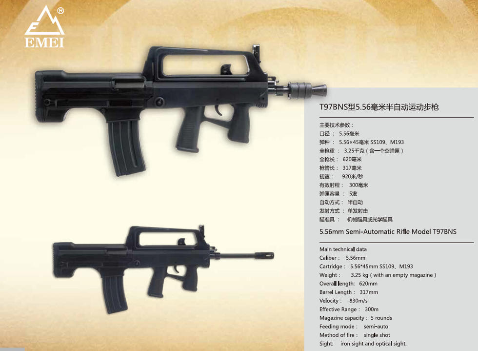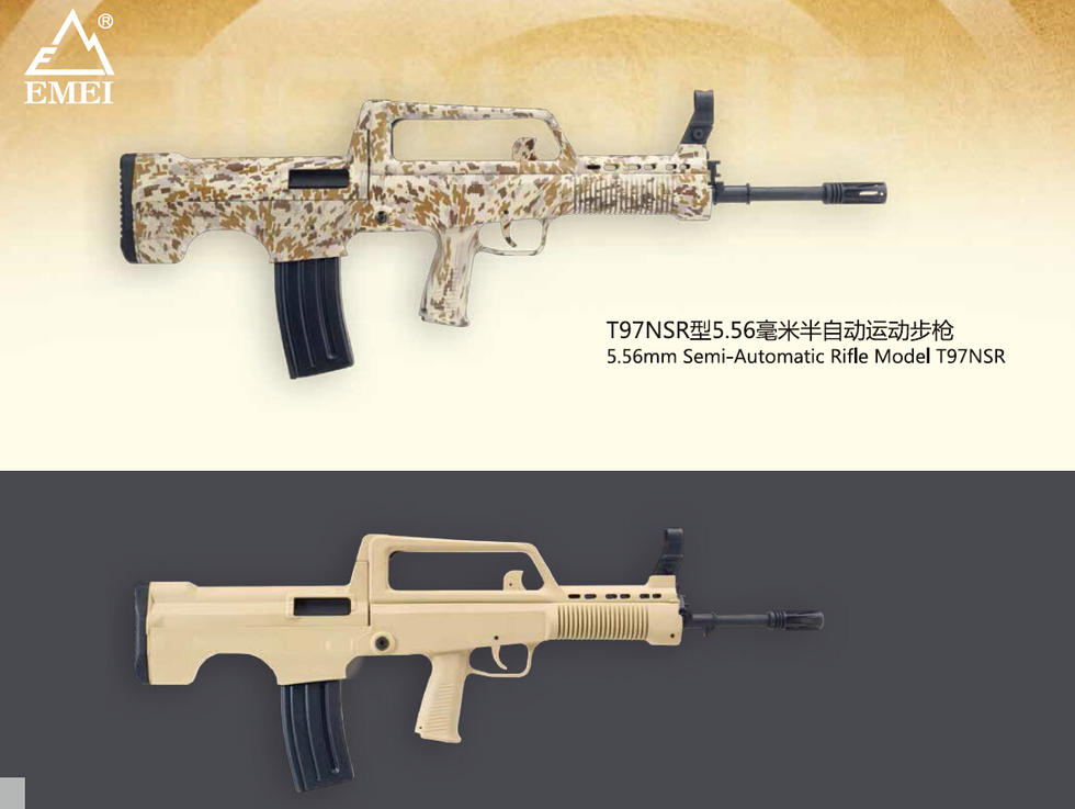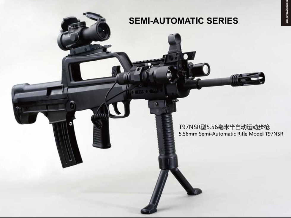 针对加拿大市场推出的T97NSR及短枪管的T97BSN,此前的97式因为容易改成全自动而被加拿大禁售,新的T97系列据说不容易改成全自动,可以合法销售