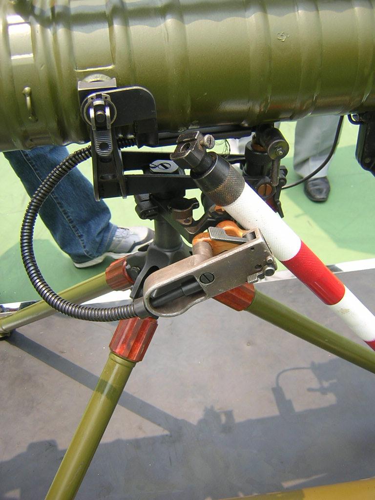 营用反坦克火箭简易火控系统主要由光学瞄准系统、激光测距系统、弹道解算系统、发光二极管光点系统、插轴连接机构等组成,用于激光测距、自动解算射击诸元、自动装定射击诸元和自动显示瞄准点。实战中,瞄准手将镜内光点对准目标即可,当目标出现后,可在10秒内确定出射击开始诸元并进行射击,提高了火力反应速度和射击效果。