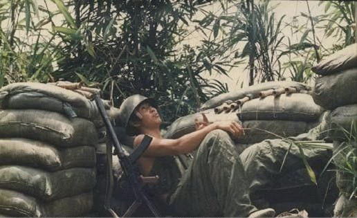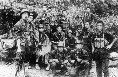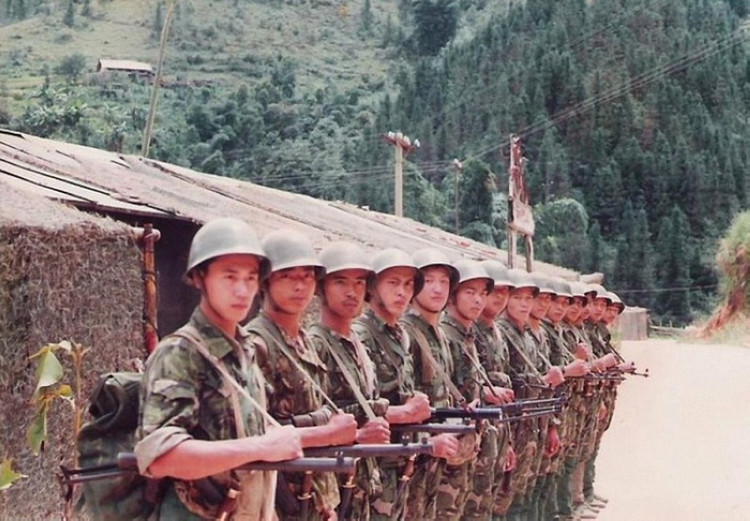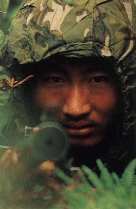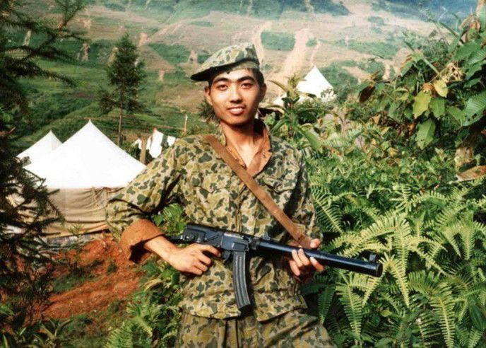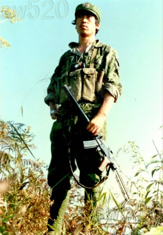 对越自卫还击战中的中国侦察兵,左一手持64式微冲