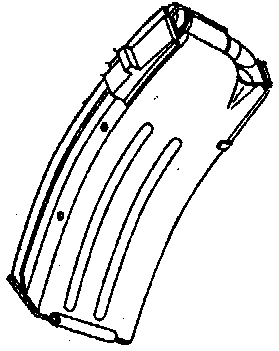 64式微冲配有20发和30发两种弧形弹匣,而20发弹匣是作为冲锋枪的常备弹匣。弹匣主要由弹匣体、托弹板、托弹簧和弹匣盖等组成。该弹匣可通用于1964年式7.62mm微声冲锋枪弹和1951年式7.62mm手枪弹。配用的64式微声弹可在200m距离穿透2.5mm厚的垂直50钢板。