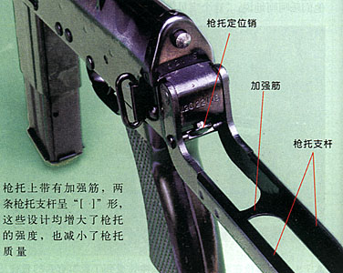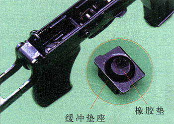 4.连发精度问题:79式冲锋枪刚设计时,曾仿照捷克61式微型冲锋枪采用过粗钢丝枪托,其结构和工艺都很简单,但抵肩射击时连发精度很差。枪托刚度特别是根部刚度加大是解决连发精度问题的关键,于是技术人员改用双臂薄板式枪托,但连发精度也不理想。最后采用“Π”形钢板中间冲孔的办法,既解决了连发精度问题,又使枪托重量不算太重。