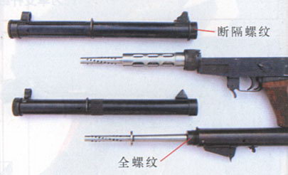消声筒外表的比较:上为64式微冲,下为85式微冲