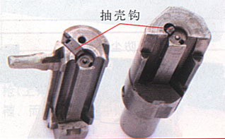 64式微冲(左)与85式微冲(右)枪机的比较,两者均采用固定击针,但抽壳钩形状不同