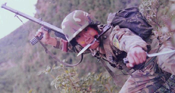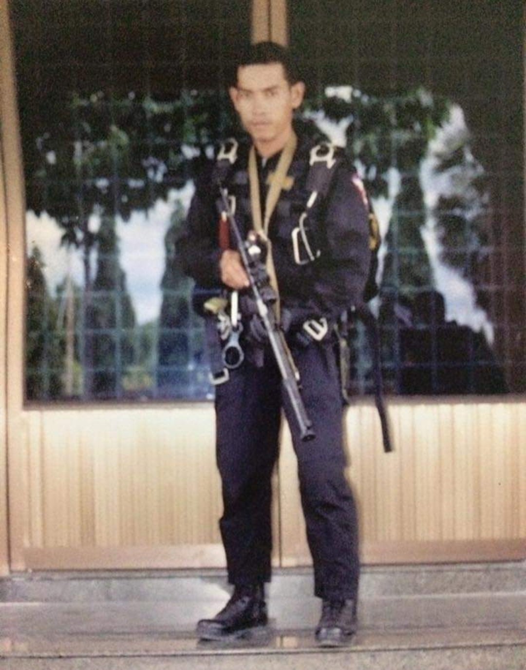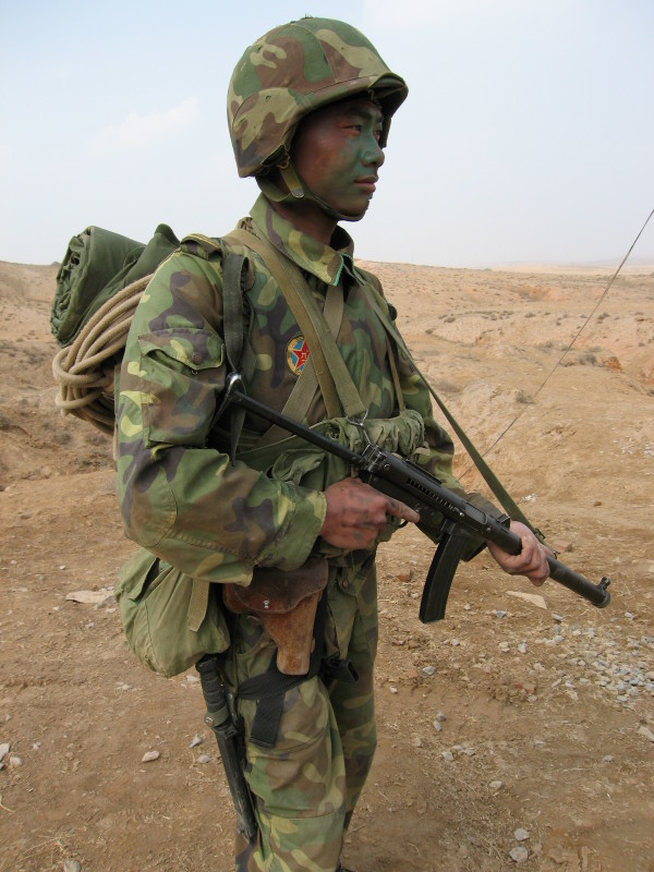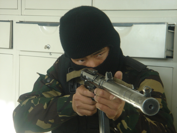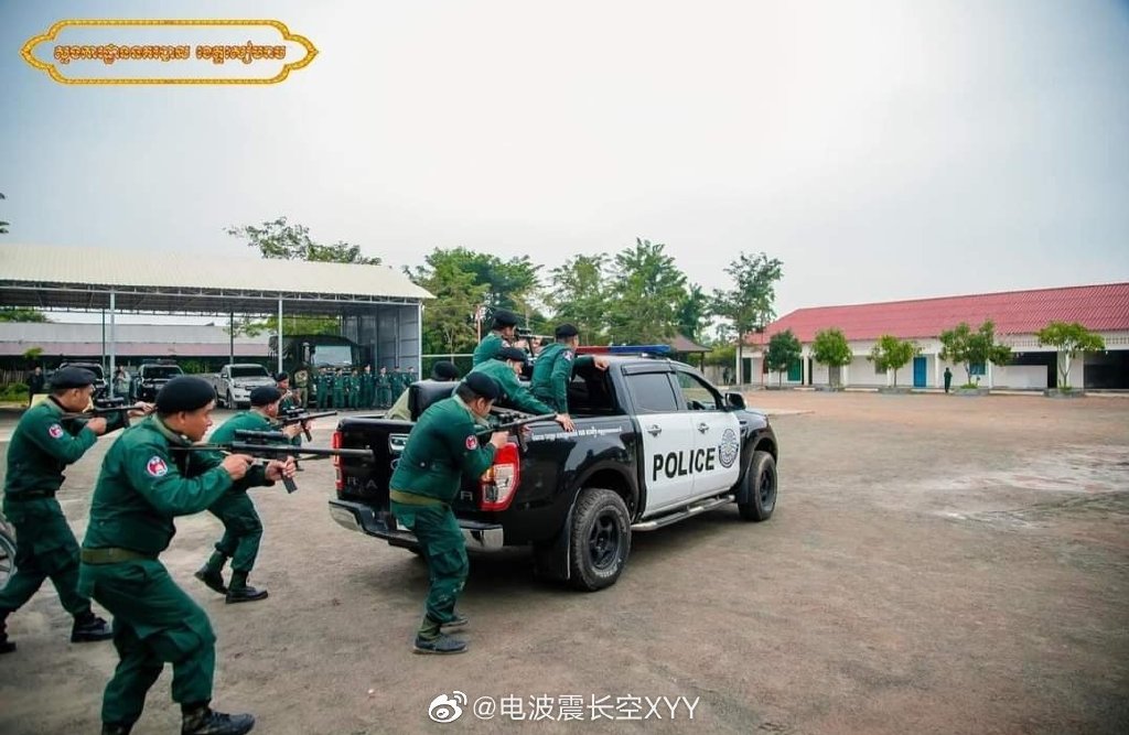 少见的柬埔寨警察装备85式微冲的照片,而且机匣上还安装了不知道什么型号的瞄准镜