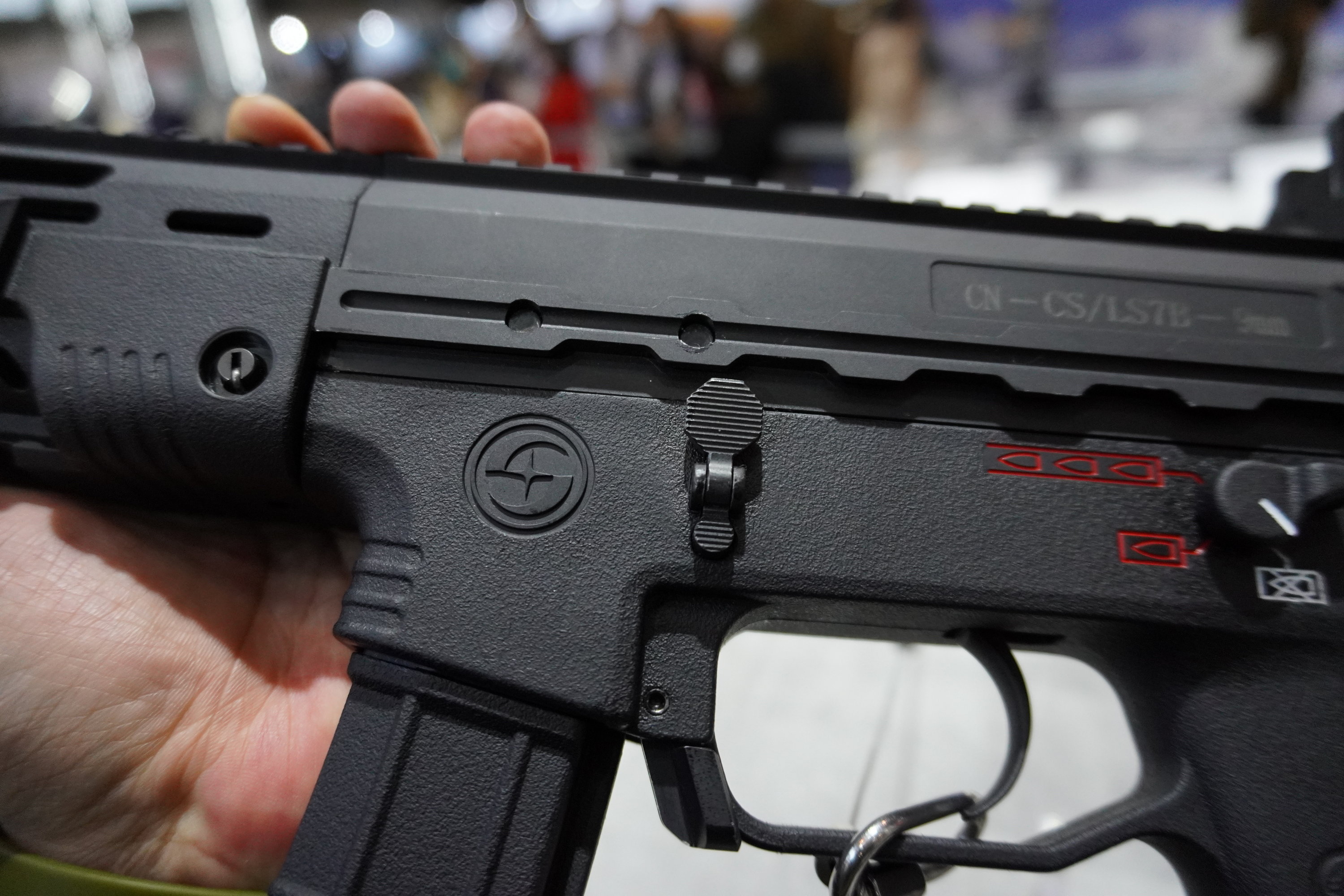 2018年“第二届世界警察手枪射击赛上”开幕式上的大形空包弹团体操表演中,由于站长本人所坐位置离得太远,但勉强能辨认出女警所使用冲锋枪是CS/LS7
