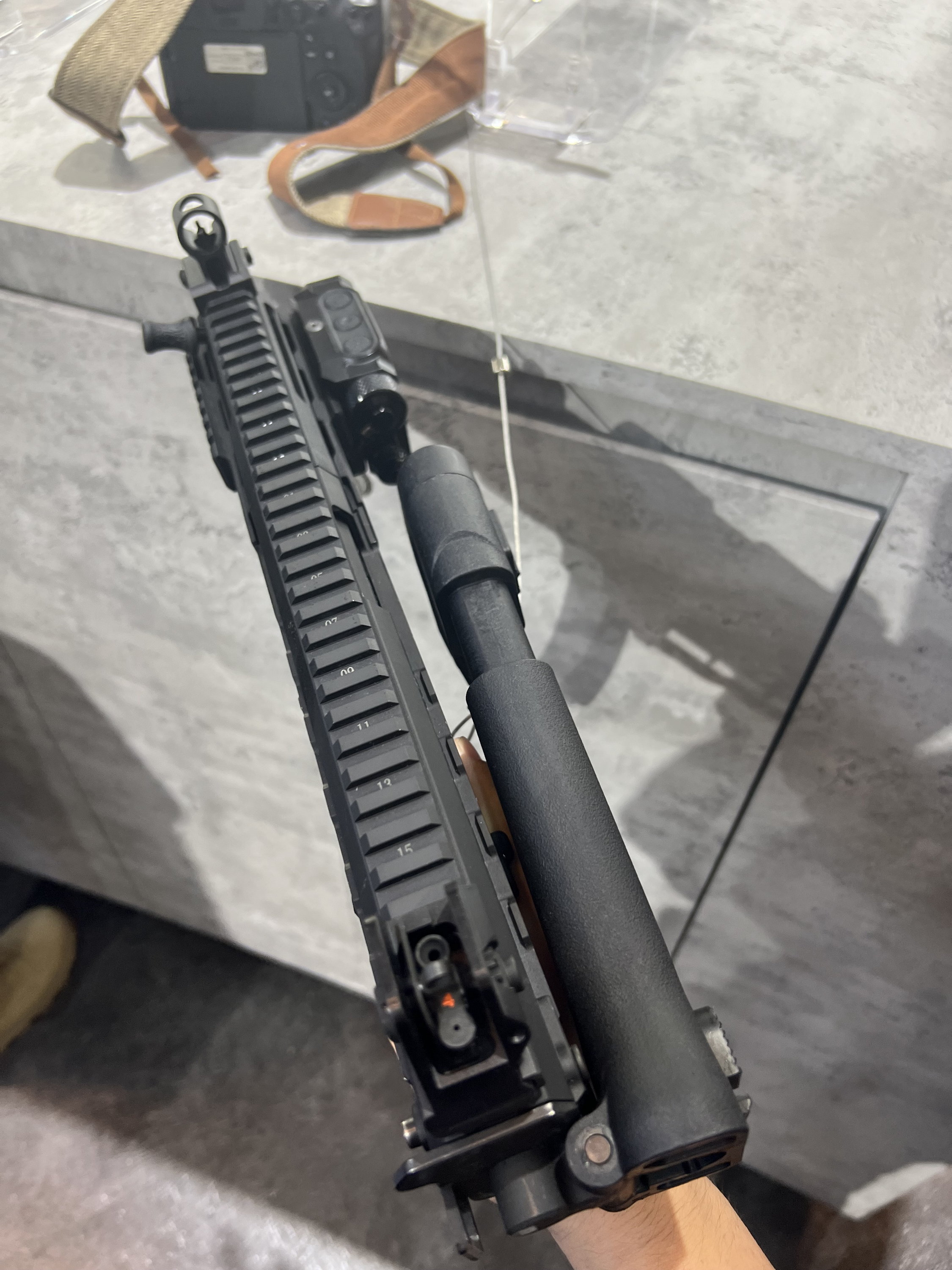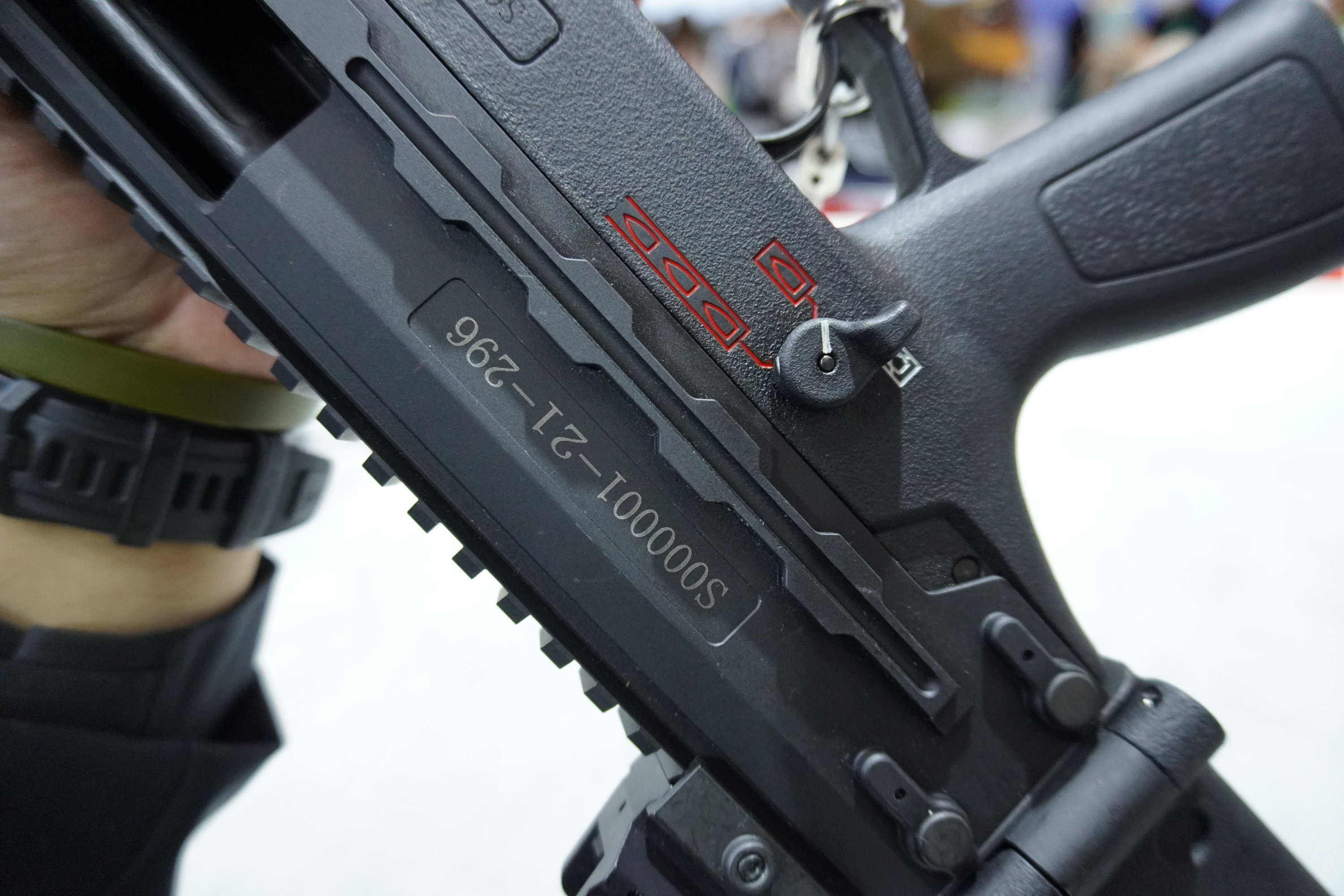 较早时曝光的CS/LS7,顶部的全长式导轨延伸至准星座,护木的3、6、9点位置也有固定导轨,护木上的导轨是整体注塑出来的,并不是加上去的