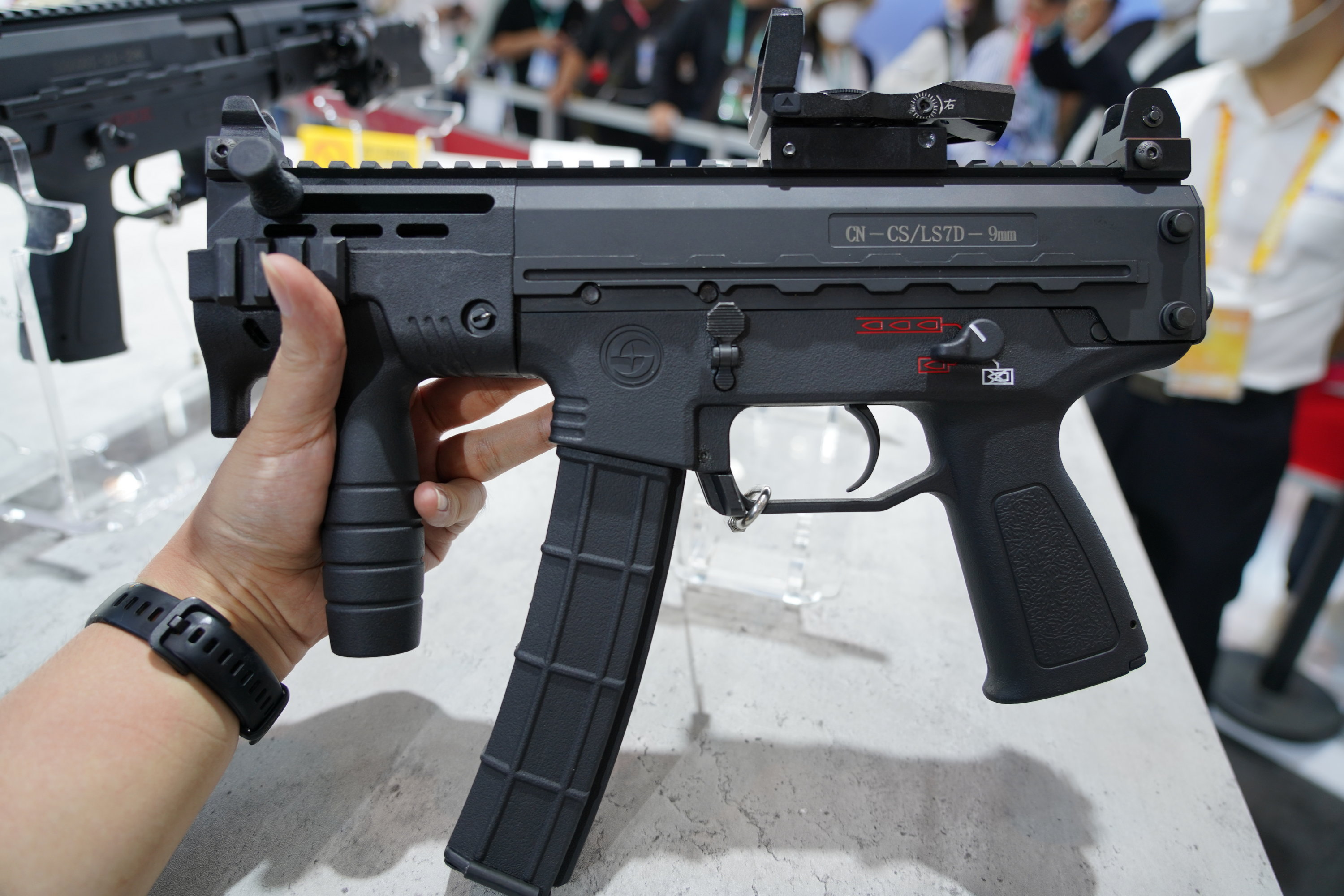 建设公司在2019年上半年的一次外贸产品的展示中,出现了一种右侧也有快慢机柄的CS/LS7,另外照片中还出现了一种类似MP5K的缩短型