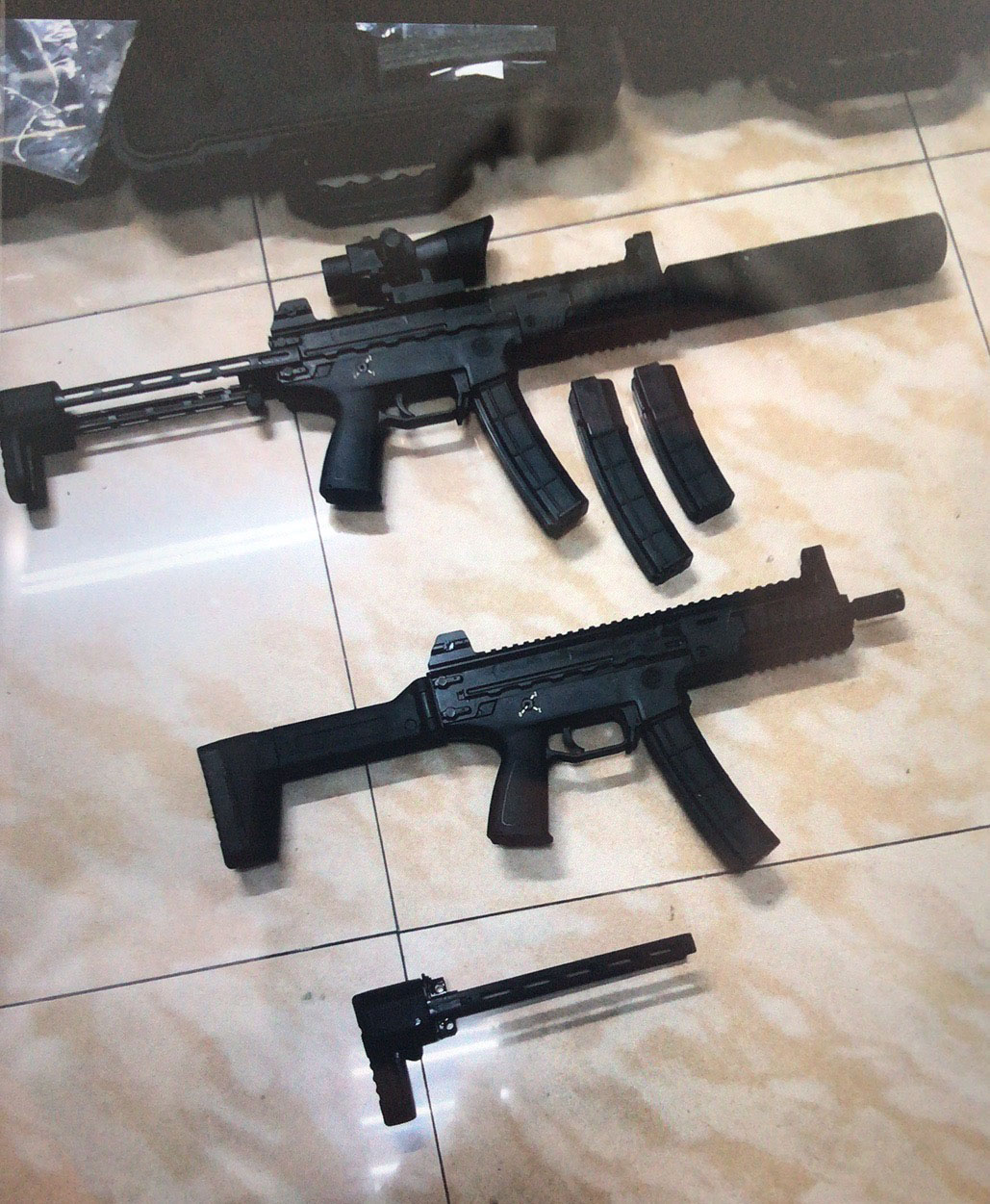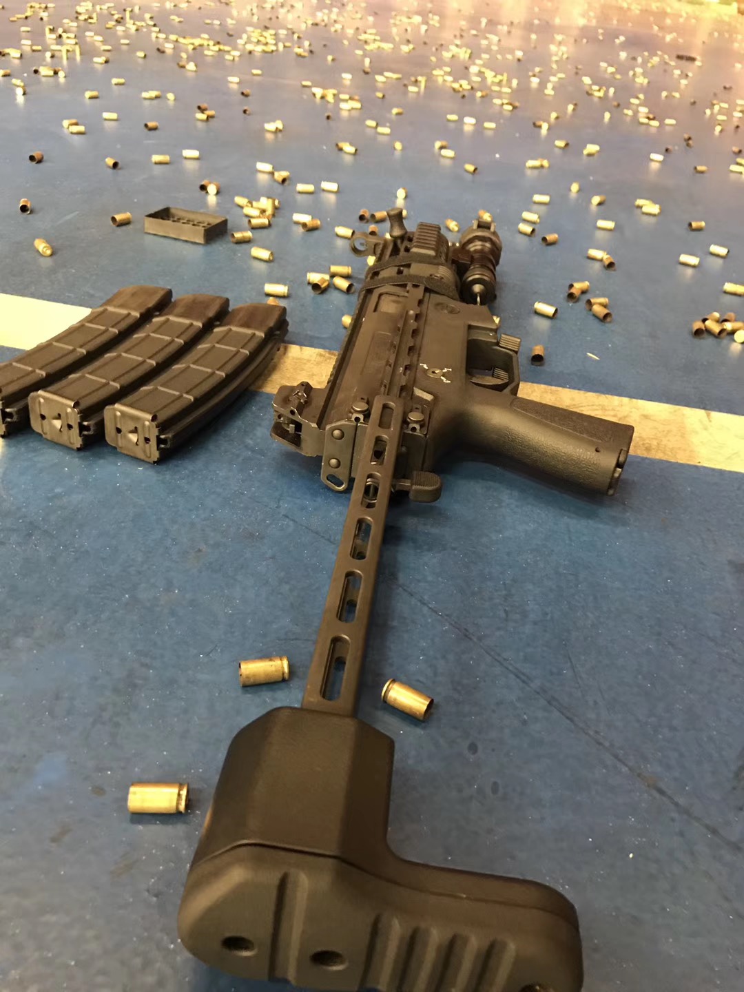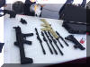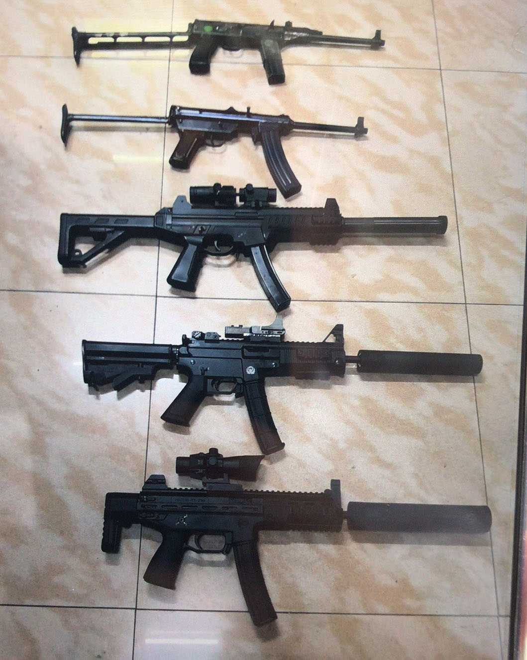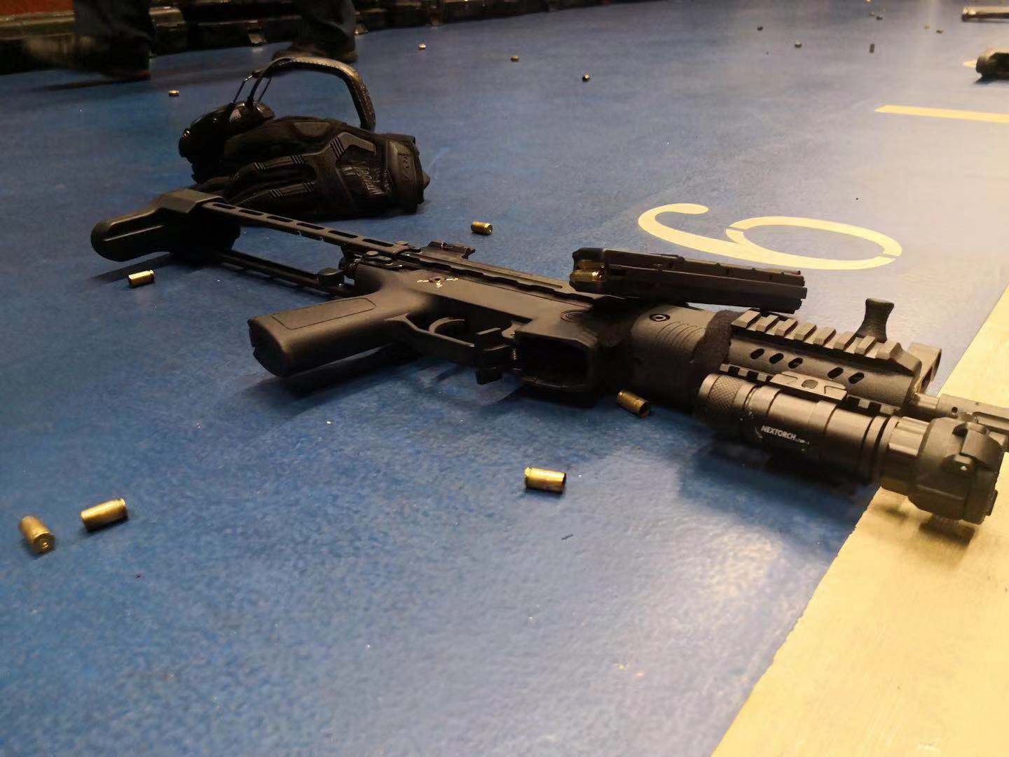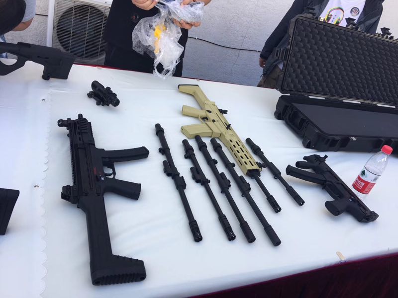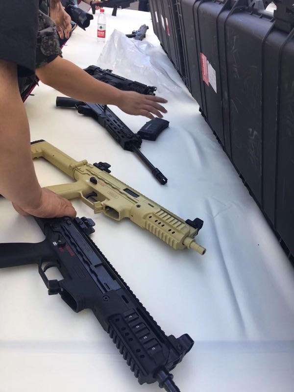某单位试用中的3种新式警用冲锋枪,与他们原有的冲锋枪放在一起比较