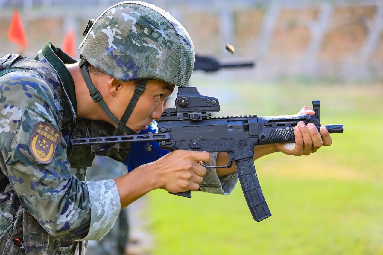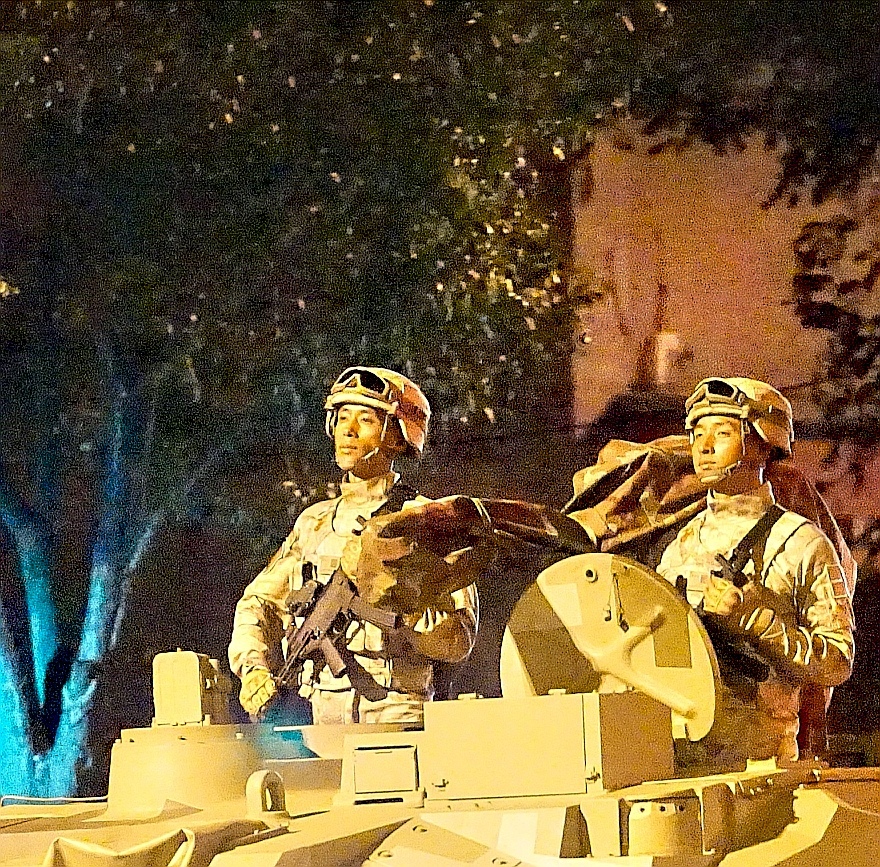2019年阅兵前几天晚上的预演,有人偷拍到的QCQ171冲锋枪,这算是正式阅兵前最早暴露的QCQ171照片