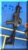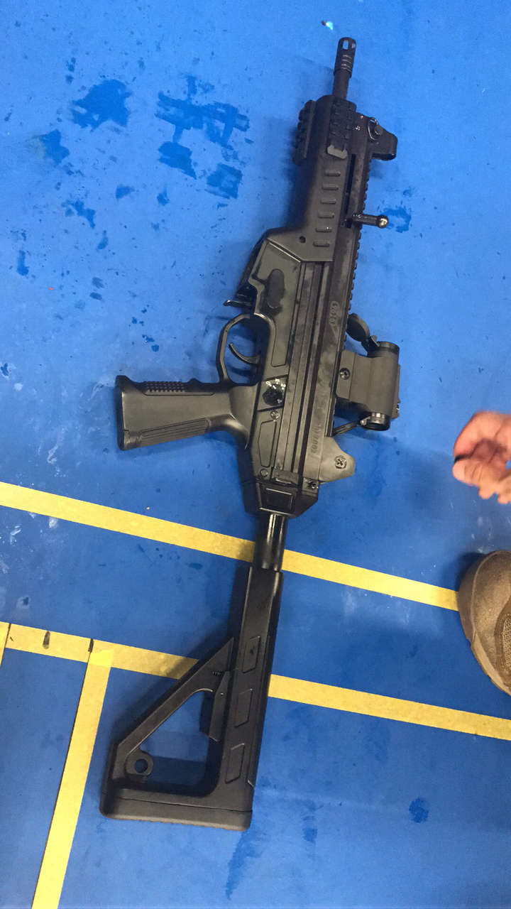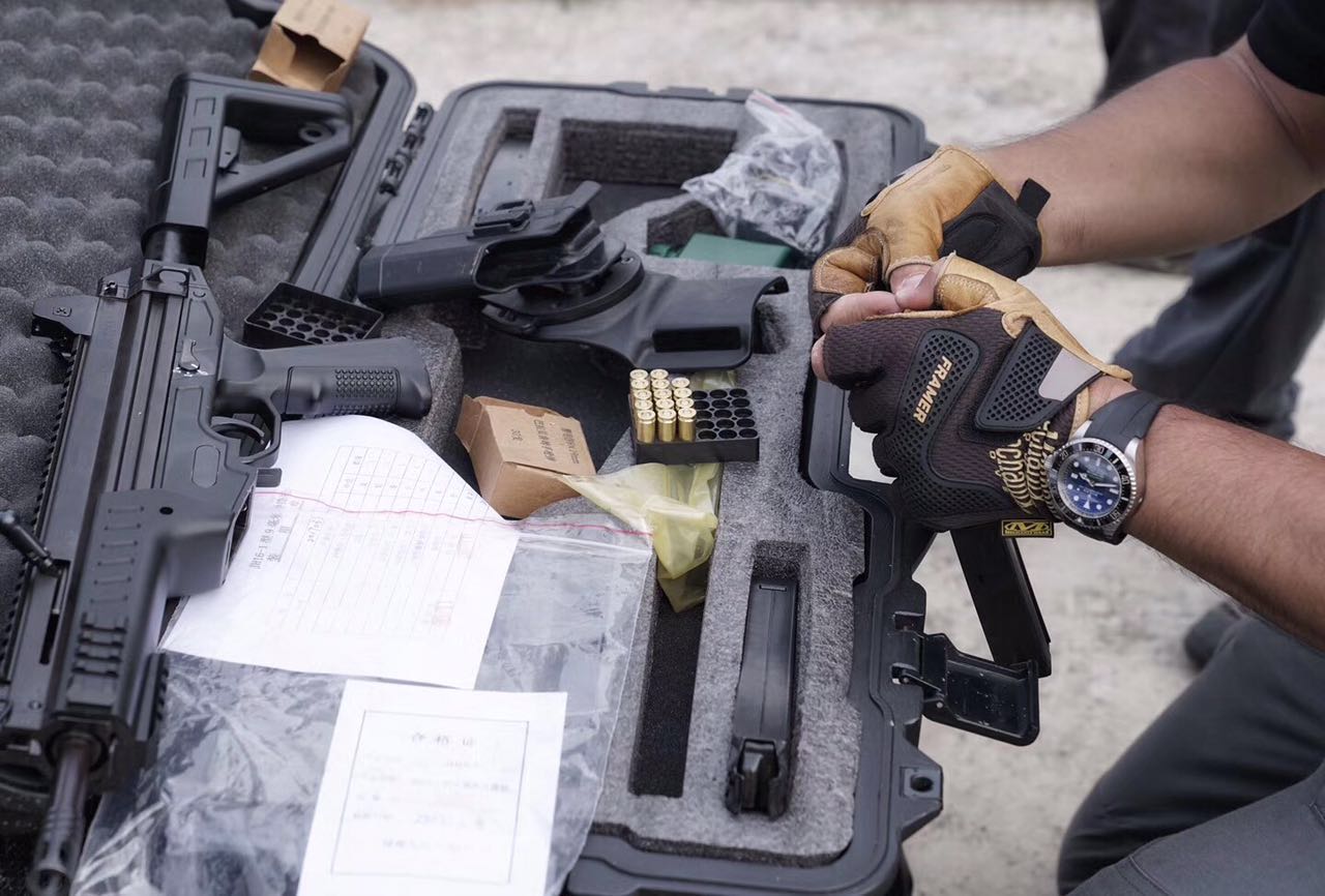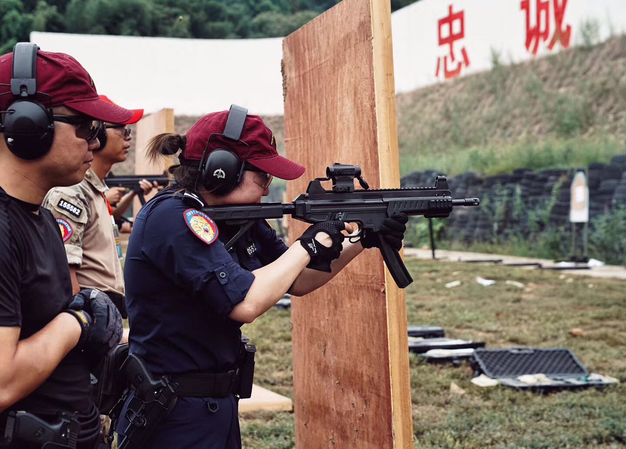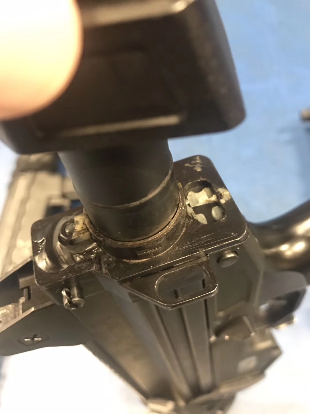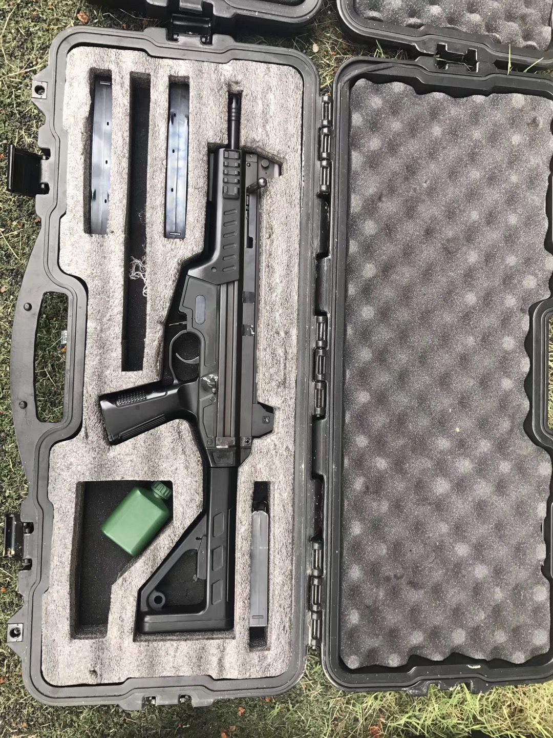 从外观上看,JH16的上机匣是金属制品,机匣顶部有全长式的皮卡汀尼导轨,一直延伸至准星座,机匣前端的下方安装有工程塑料制的护木,护木的3、6、9点位置有整体注塑出来的小段皮卡汀尼导轨,下机匣也是金属制品,塑料制的手枪形握把通过螺柱安装在下机匣上。拉机柄位于护木的左上方,可以像MP5一样利用拉机柄活动槽的卡口手动挂机,与其说JH16像MP5,不如说它更像司登——同样是自由式枪机、可手动挂机,只不过拉机柄的位置不同。JH16的枪托是伸缩式,快慢机在机匣两侧都可操作。
