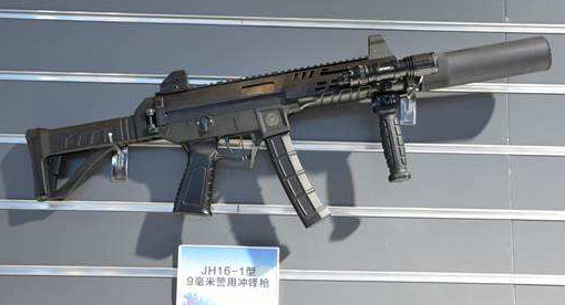 在2019年的北京警用装备展上,厂家展出了JH16-1型冲锋枪,外观上能看到的改进包括把原来只能伸缩的枪托改成既可伸缩又可折叠,另外护木的右侧增加了拉机柄槽,估计是允许用户自由选择拉机柄的方案方向。另外在护木上还增加了散热孔。