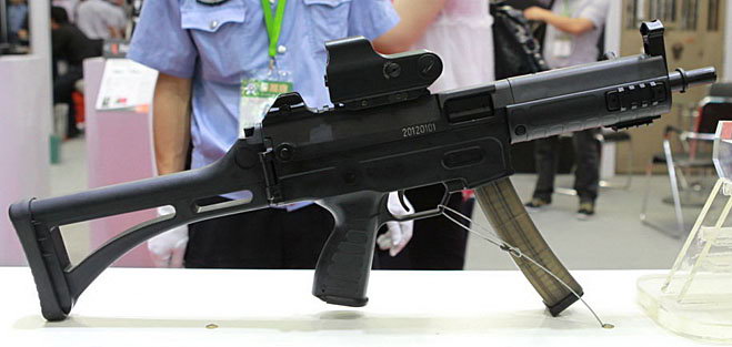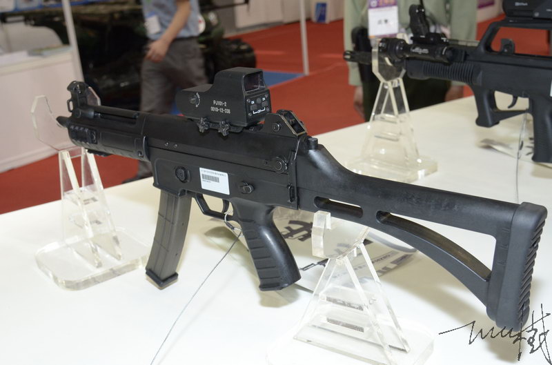 2012年5月北京警用装备展上展出的CS/LS5型冲锋枪,上面还安装了国产的全息瞄准镜(退壳挺提供)