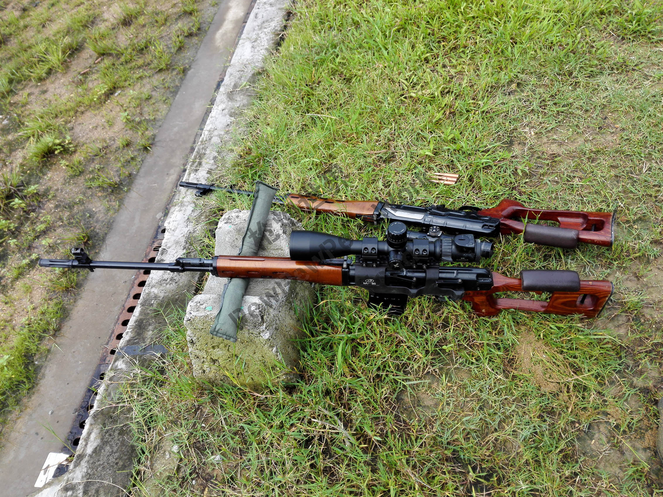 瞄准镜的设计/生产质量是79/85式一个致命的缺点,主要原因是瞄准镜的燕尾槽和步枪上的突笋结合时,间隙较大,瞄准镜上的齿形螺母不能将紧定扳手调整到合适的程度,所以枪、镜不能很好地结合在一起,结果在实弹射击时,由于武器的后座和震动,使瞄准镜经常出现松动的现象,影响射击精度(详见《轻兵器》1997年第5期)。但枪镜结合不稳的确是AK式机匣的一个缺点,不清楚俄罗斯的SVD是如何解决这个问题的。