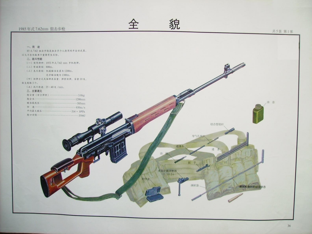 ![]() 85式狙击步枪挂图上对这种携具的说明 |