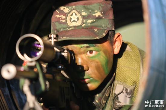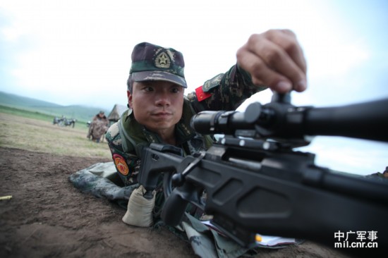 2014年4月兰州特大的狙击手在练习使用CS/LR4