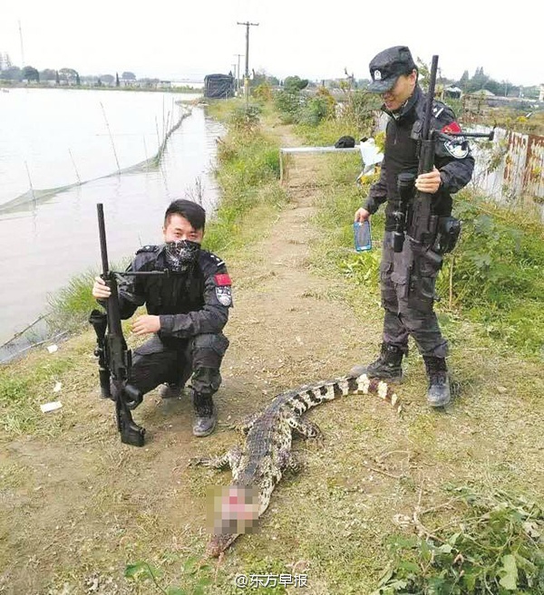 2016年11月2日浙江特警成功击毙养殖场出逃鳄鱼一头