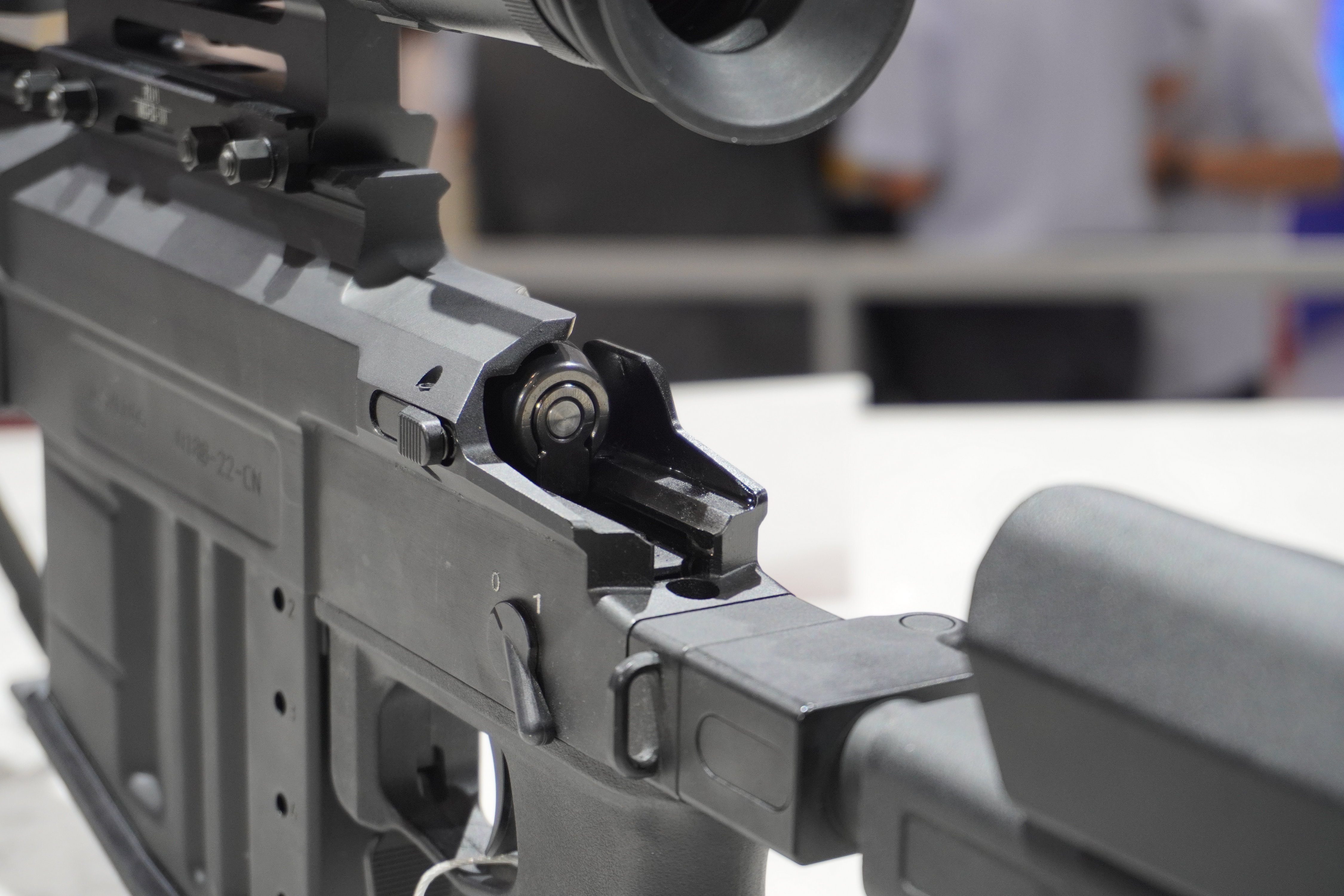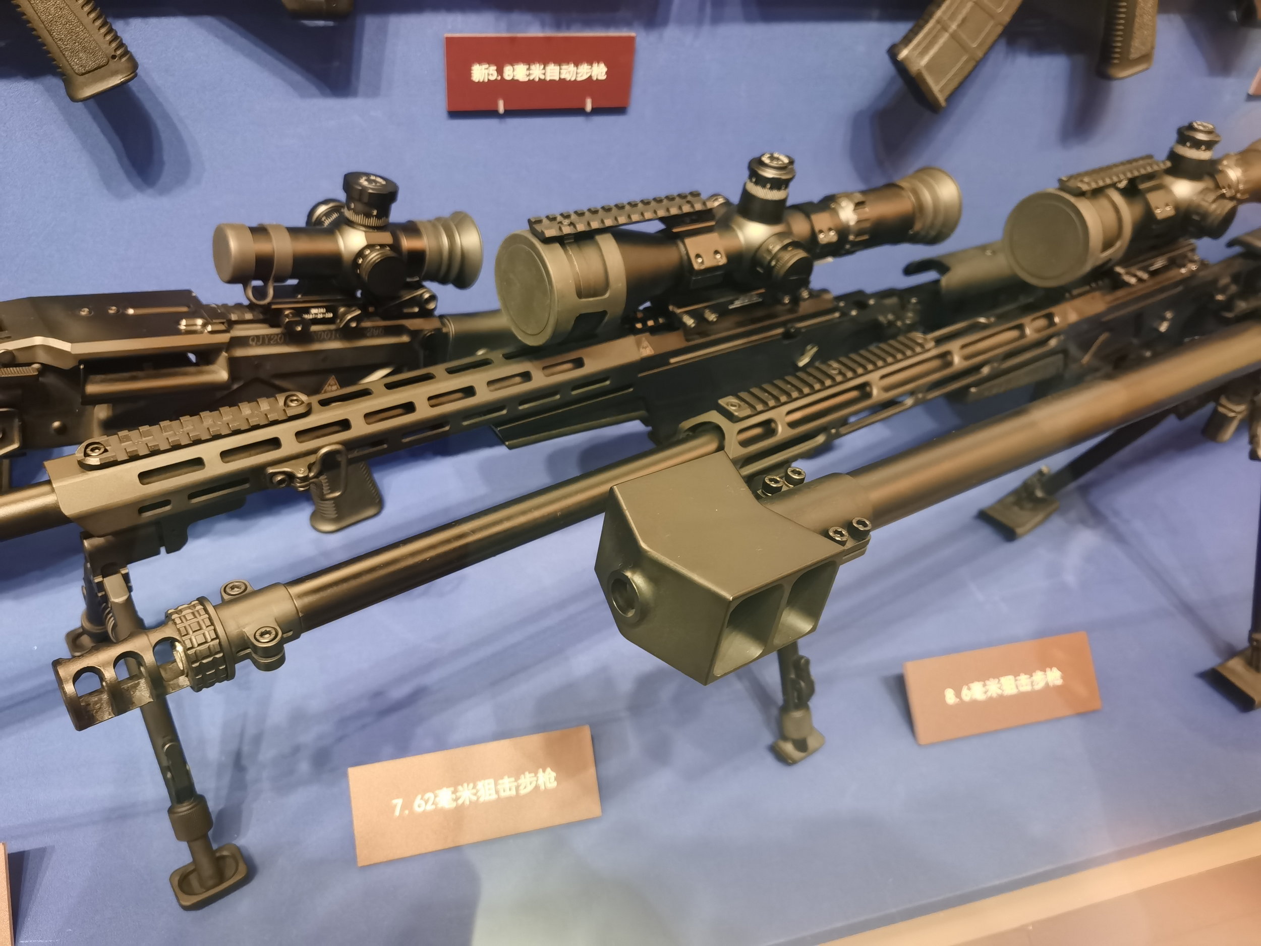 2022年党史馆展出的“部分国产新型单兵装备”展柜里的QBU201、202和203