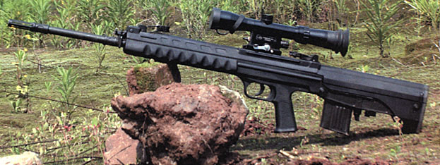 97式狙击步枪是88式狙击步枪的外贸型,口径改为5.56mm NATO。为了适应5.56×45mm铜壳弹,除了枪管、自动机的尺寸有所不同外,还要进行其他的改进。例如铜比钢软,因此抛壳系统的力量需要减小,又如底火较敏感而需要调整击针重量、击针头部直径和突出量等等。97式狙击步枪和88式狙击步枪的外形完全一样,难以识别,甚至弹匣外观也基本相同。但由于5.56mm弹的尺寸较小,因此97式的弹匣在口部多了几条筋,这样改变弹匣就可以让机匣完全通用,不过弹匣装枪后也会识别不出来。