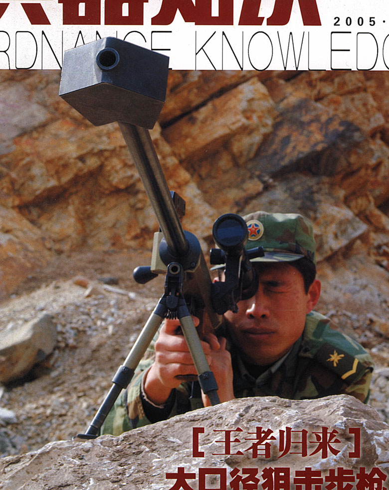 在2005年第1期的《兵器知识》的封面上,刊登了一种新型的国产步枪,并在内文中对这种被命名为W03型的大口径狙击步枪作了简单介绍。文章的内容并不多,也没有细节的图片,通过正文和图片我们可以知道W03型是一种无托结构的步枪,采用机头回转式闭锁,旋转后拉式枪机。枪管有737mm的短枪管和1002mm的长枪管两种,全枪长度分别为1100mm和1370mm,枪重分别为11kg和12kg。