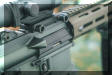 T112还配备了折叠式的机械瞄具,但并没有像时下流行的AR步枪那样通过皮卡汀尼导轨安装,而是分别固定在机匣后部和导气箍上。在辅助瞄准装置上,T112还配备了TS112瞄准激光器和TS112近距离战斗瞄准镜,前者是综合了激光指示器和战术灯的多功能装置,后者是一个红点瞄准镜。