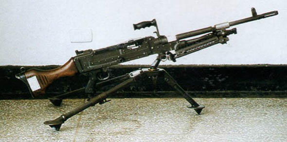 T74还有一处与FN MAG较为明显的不同之处,就是它的两脚架沿用了57式轻机枪的两脚架(但触地端的形状不同),这样可能是为了继续沿用原来的生产工装,由于T74与FN MAG一样都没有护木,在腰射时是将折叠的两脚架充作护木的,而有台军士兵反应腰射时T74的这种脚架的握感并不是很理想。