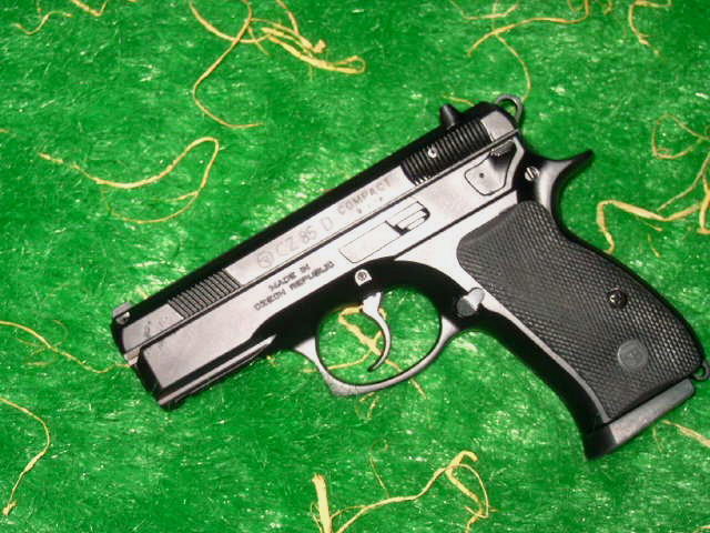 CZ 75 D COMPACT其实就是CZ 75 P-01型,所以与普通的CZ 75紧凑型相比,取消了手动保险功能,但有待击解脱杆,底把前下方有附件导轨。CZ 75 D紧凑型还有一种.40口径的型号,这个型号称为CZ 75 P-06。