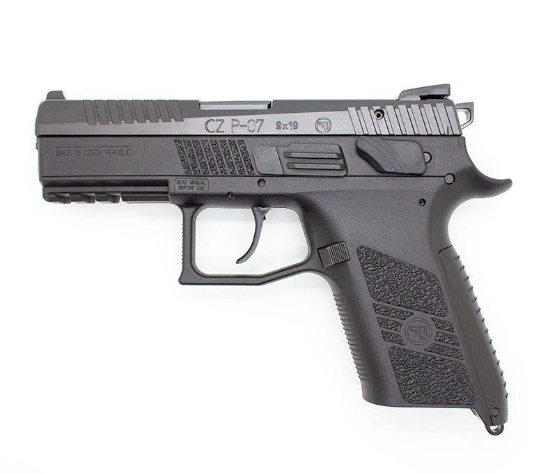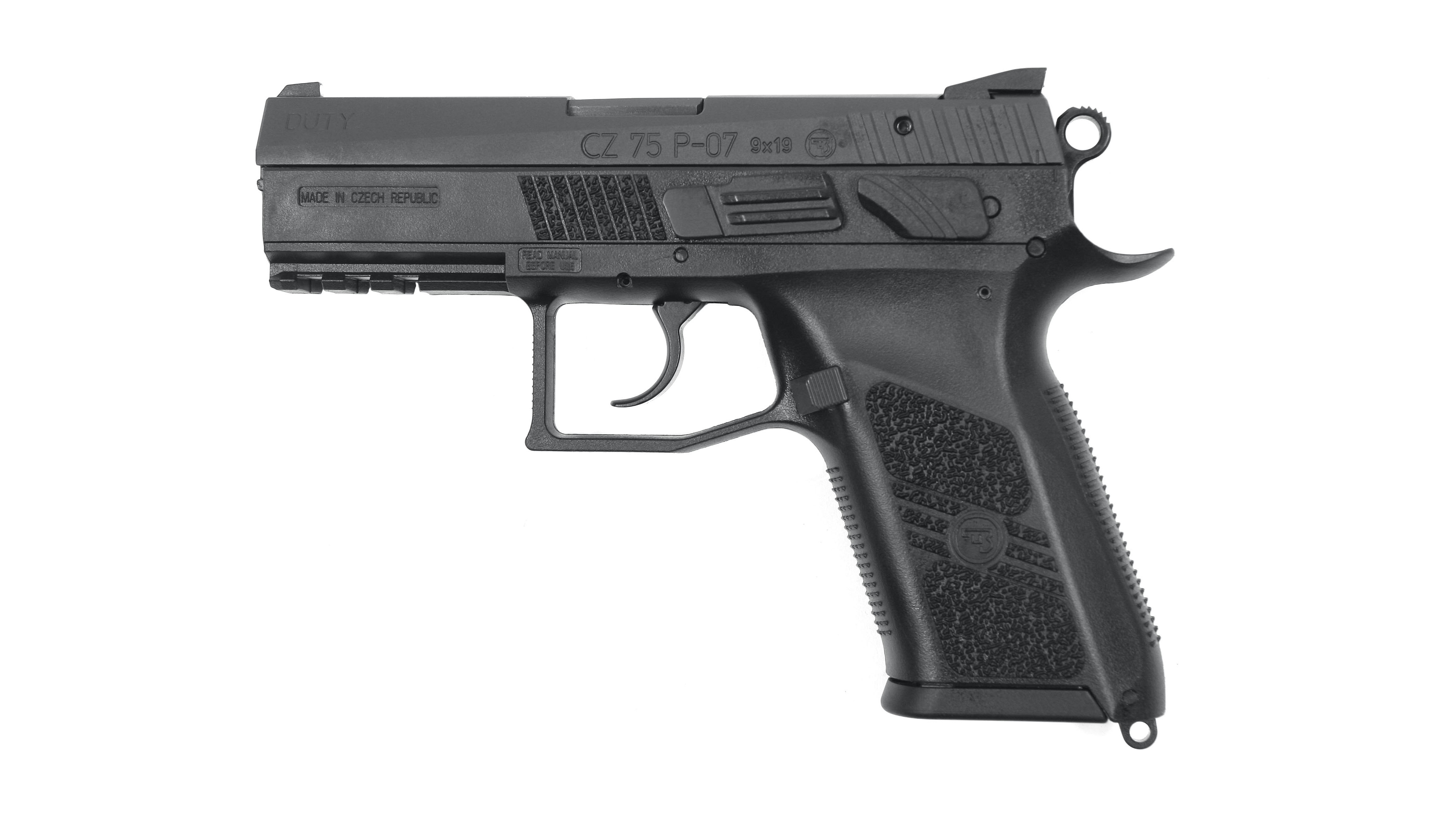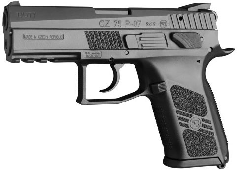 CZ 75 P-07是CZ 75紧凑型系列中的新型号,称之为勤务型(Duty),指可作为军事单位或执法单位的勤务用枪,当然,该枪也同样在民用市场出售。在2007年研制,2009年正式量产和销售。2013年推出的P-09手枪则是P-07的放大型,结构一样,只是枪管、套筒和握把较长,因此弹匣也比较长,该枪在2014年正式生产和投放市场。所以和其他手枪先推出全尺寸型再推出紧凑型不同,P-07/P-09系列是先推出紧凑型,5年后再开始卖全尺寸型。