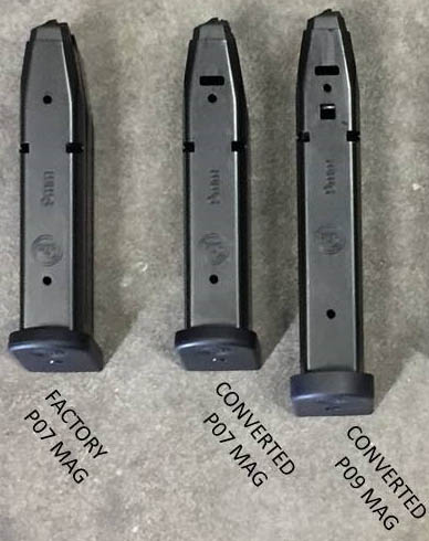 最初推出的CZ P-07只有9mm口径型,后来针对北美市场又增加了.40 S&W口径的P-07,并于2010年的SHOT SHOW上展出。而全尺寸型的CZ P-09也是暂时只有9mm口径。另外针对欧洲市场(主要是意大利),P-07还有专门的9x21mm口径。P-07的9mm弹匣和.40弹匣容量分别为16发和12发,P-09的9mm弹匣和.40弹匣分别可容纳19发和15发,这些弹匣都可以把弹匣底板换成一个增容弹座,这样就可以各增加2发弹。因此更换增容弹匣底座后,P-07的9mm弹匣和.40弹匣容量分别为18发和14发,而P-09则分别为21发和17发。