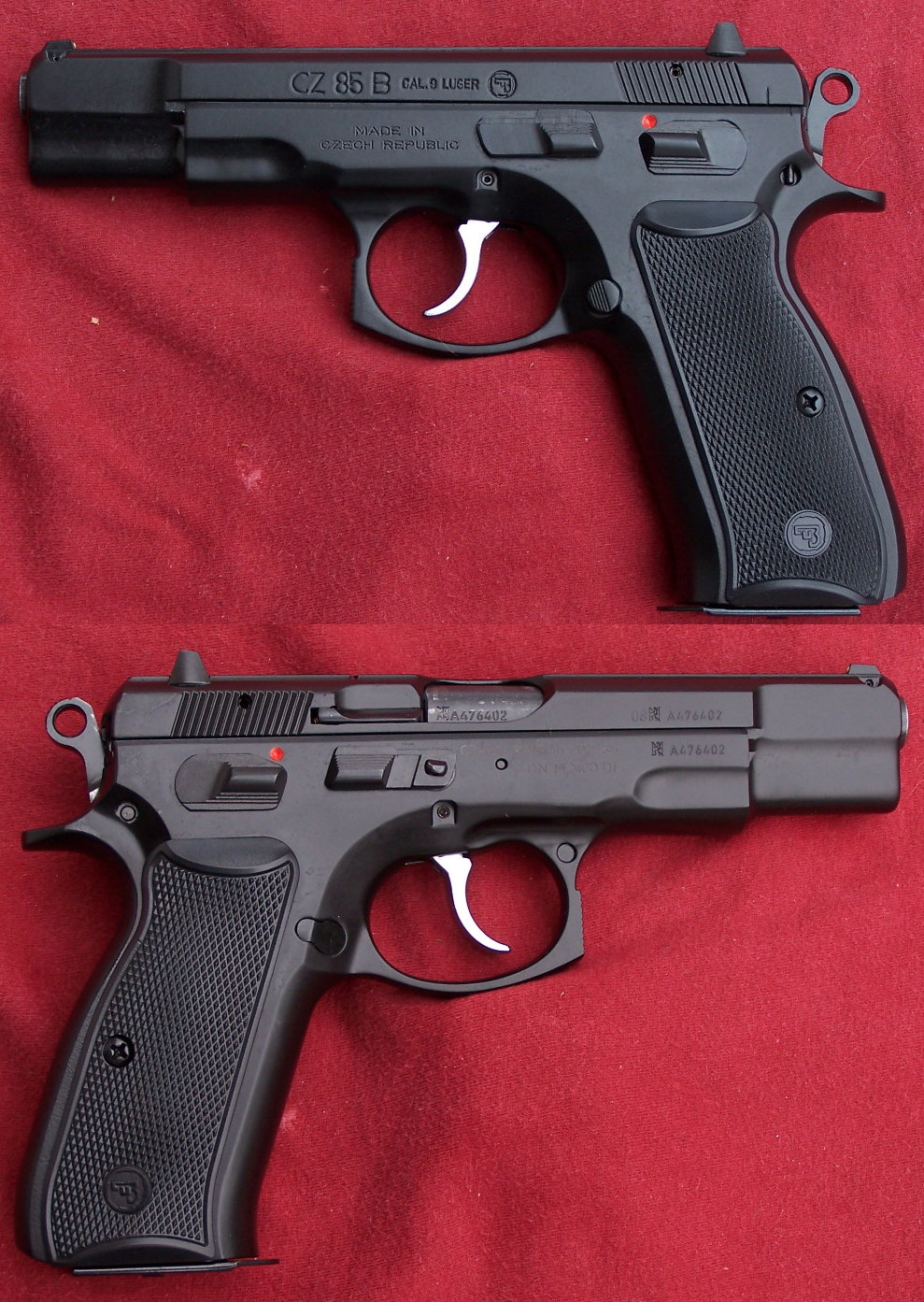 和第二代的CZ 75B式一样,CZ 85B也是在CZ 85的基础上增加自动击针保险,外观上CZ 85B与CZ 85比,采用了带防滑纹的方形扳机护圈及环形击锤。