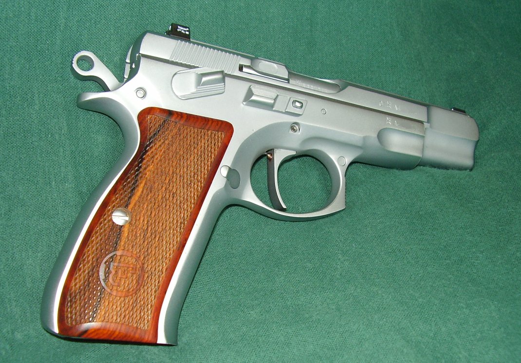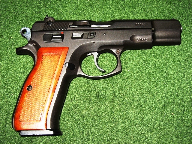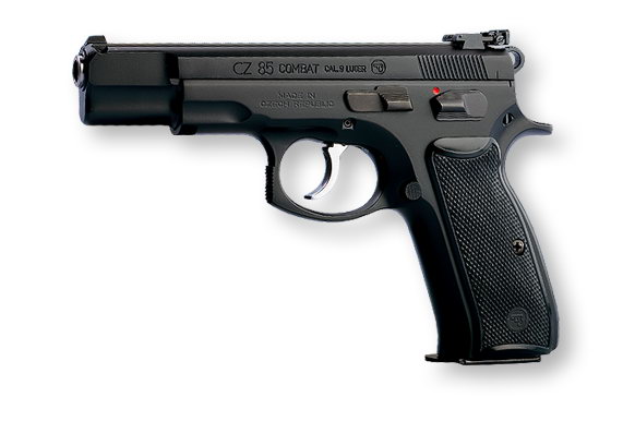CZ 85 COMBAT外形和CZ85B很接近,但采用可调照门,套筒上有COMBAT字样。