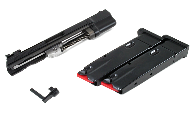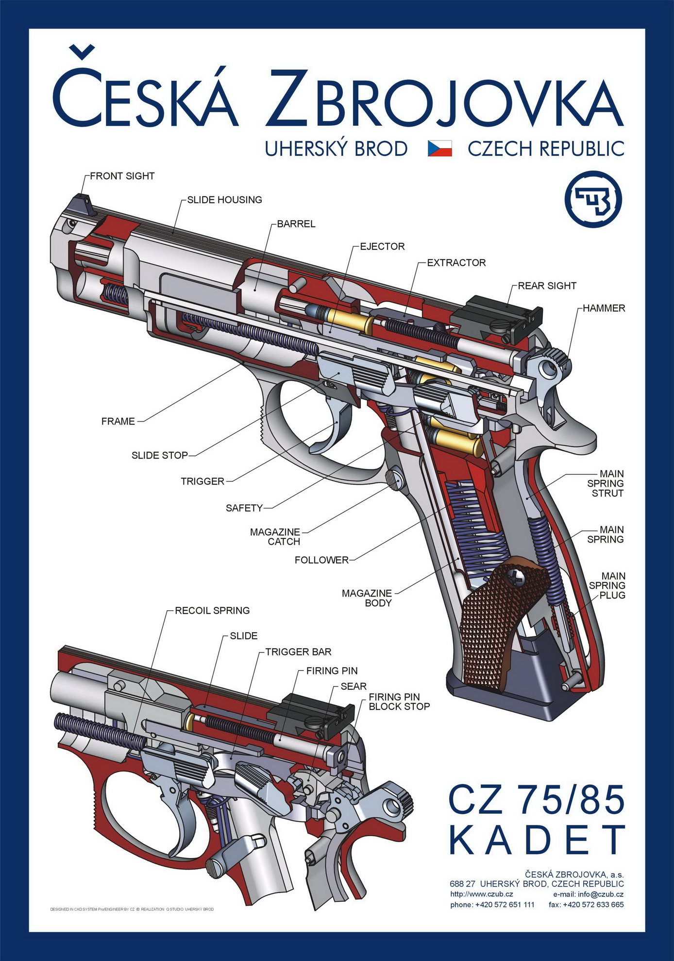 Kadet是.22 LR口径型的CZ 75,既有整枪,也有只卖套筒/枪管组和10发弹匣的改装件,可装配到标准的CZ 75B底把或SP-01底把上。