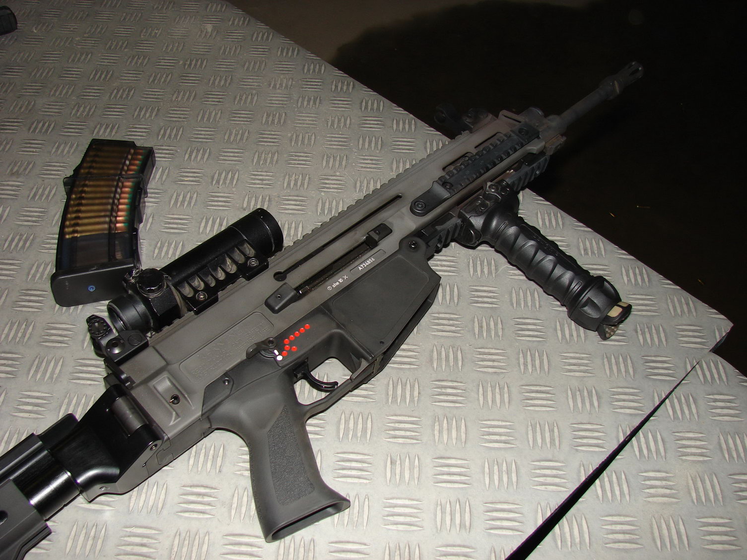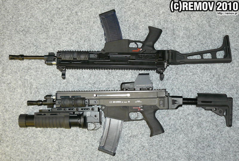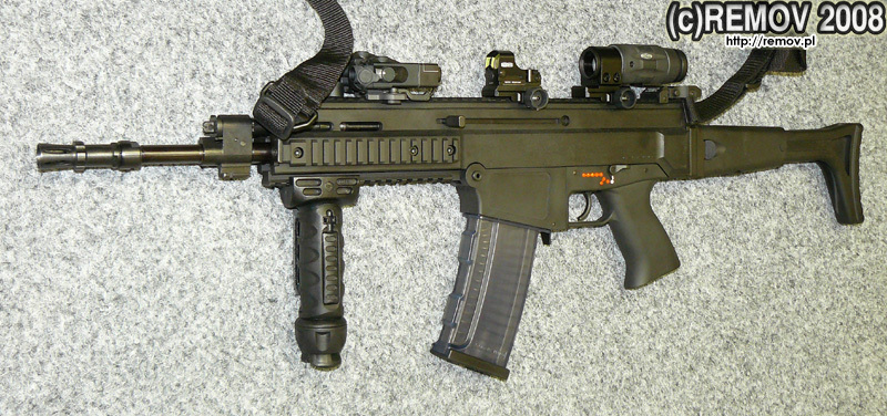 CZ 805 BREN A突击步枪最初的命名是CZ S805A,这是捷克最新的突击步枪,第一次公开露面是2007年的一次展览上,虽然当时还没有公布详细的资料,但从图中可以明显看出该枪的设计受到FN SCAR的许多影响,但有一些地方又和XM8很相似,而且又参考了G36的一些细节。