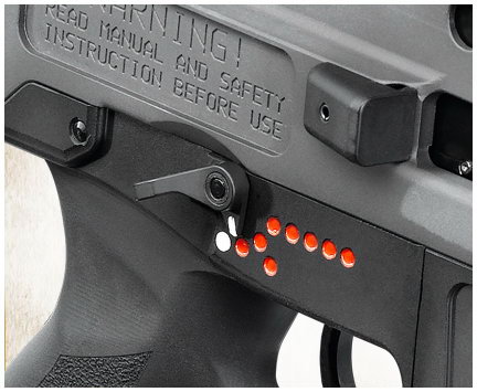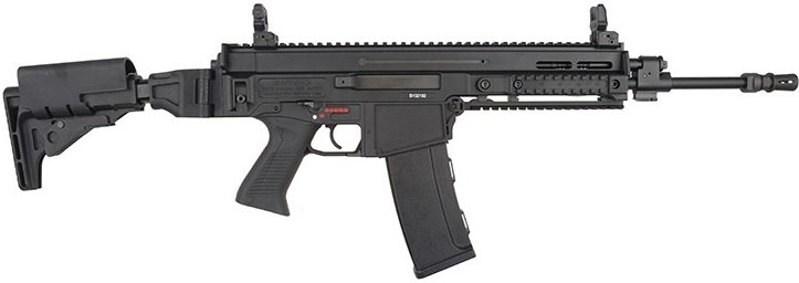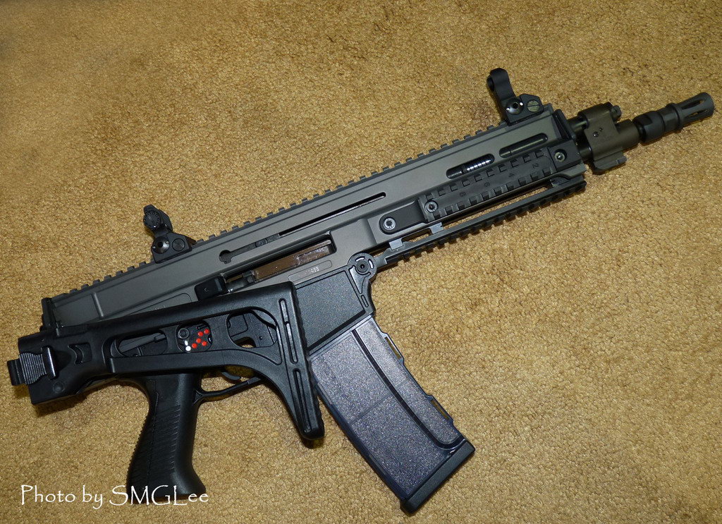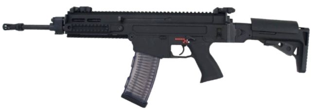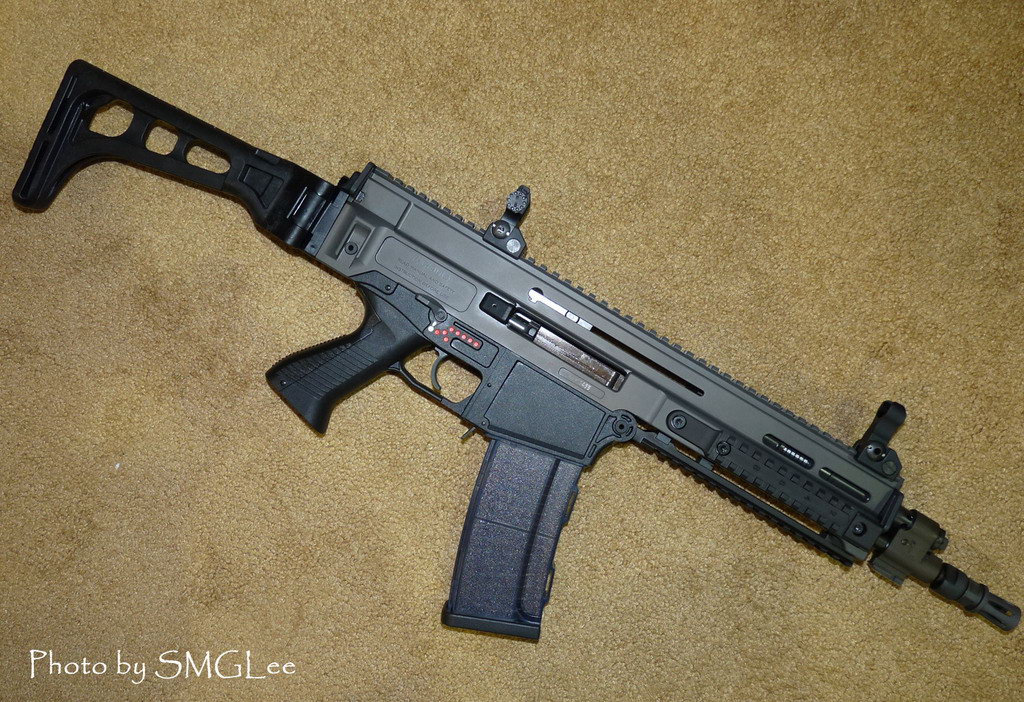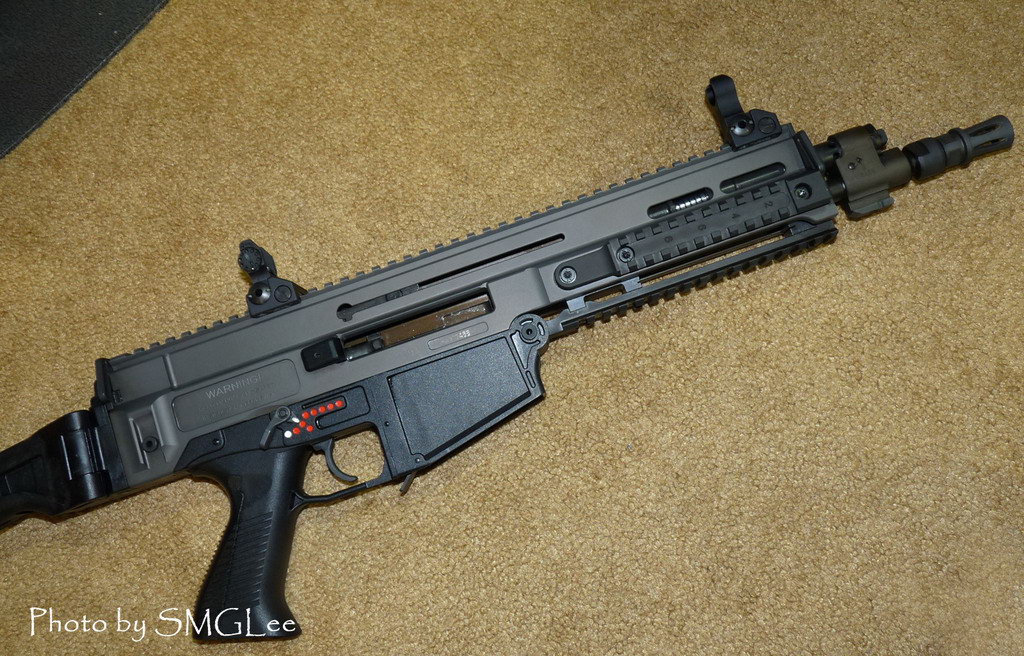 击发机构有单发、2发点射和全自动功能,手动保险/快慢机柄在两侧都有。