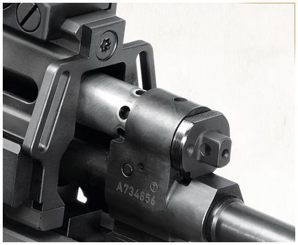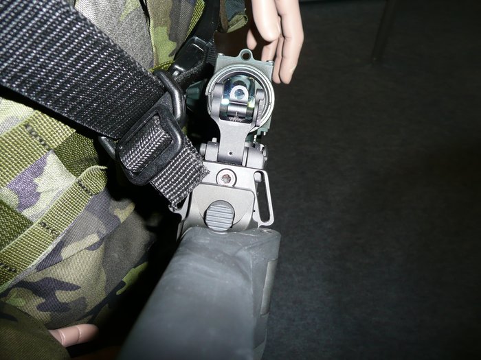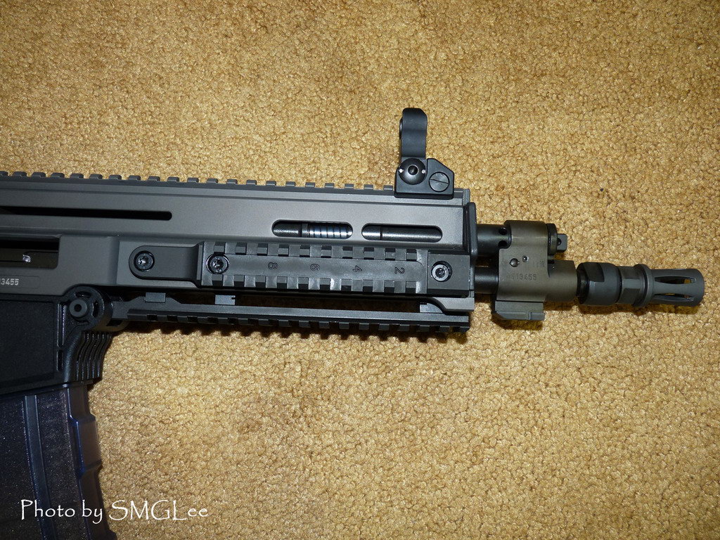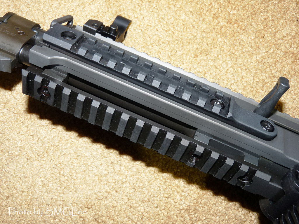 机匣顶部有全长的皮卡汀尼导轨,机械瞄具和光学瞄具一样都是通过导轨安装的。