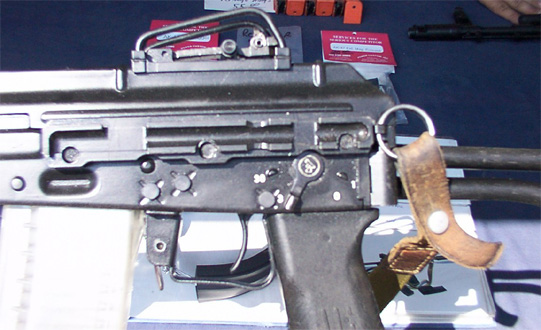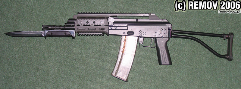 机械瞄具由带护翼的柱形准星和带觇孔照门的机械滑动弧形表尺组成。其中突击步枪的表尺射程达800m,而轻机枪达1000m。照门每100m为一个调节增量,按需要可换成3点式发光夜用瞄具。如有需要也可安装上红外夜视设备。由于机匣也与AK一样,因此需要在左侧加上辅助导轨才能装上瞄准镜座。在试验中,突击步枪在无依托条件下的有效射程为200m,有依托射击的有效射程为400m。