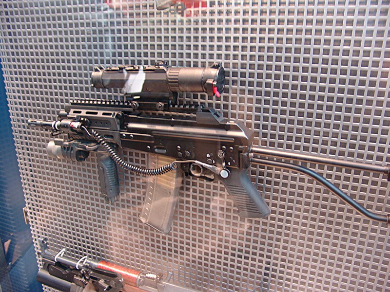 最初,对这个新口径的需求也要求枪族能接受M16的弹匣,然而如果要满足这个要求就必须重新设计整个机匣,由于时间和财力上的理由,军方最终放弃了这个要求。于是唯一的变化是改变口径,并使冲锋枪和突击步枪的弹匣材料由金属改为透明塑料。轻机枪最初的金属制45发轻机枪弹匣也被改为75发弹鼓。