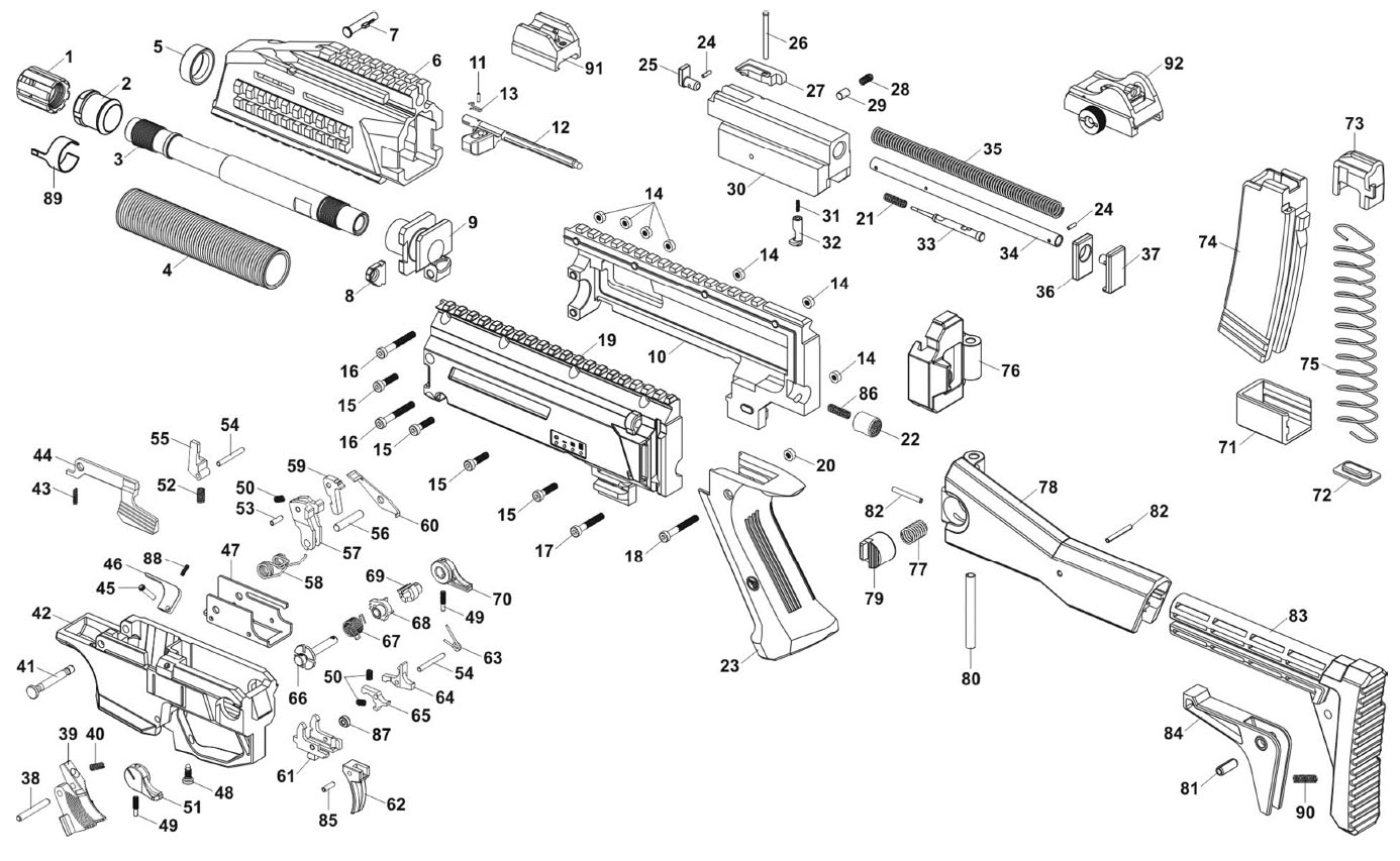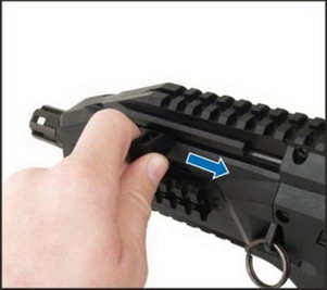 蝎式EVO 3 S1半自动卡宾枪,可以看到快慢机上没有点射和连发的档