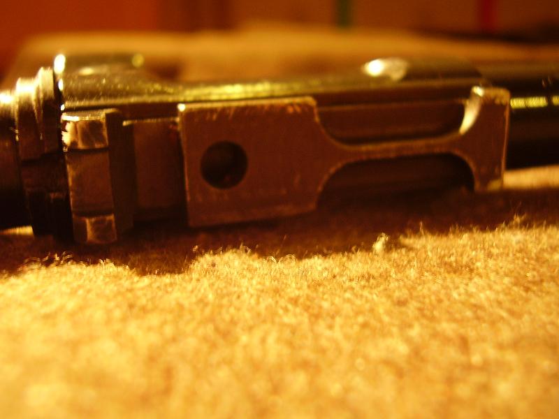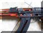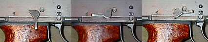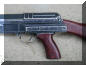 手动保险/快慢机柄位于机匣右侧,有3个装定位置,分别为保险、单发和全自动。装在保险位置时,快慢机轴同时压下单发杆和连发杆,使它们与阻铁脱离,此时虽然扳机仍然能够扣压,但阻铁无法解脱击锤。 |