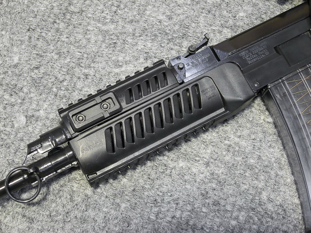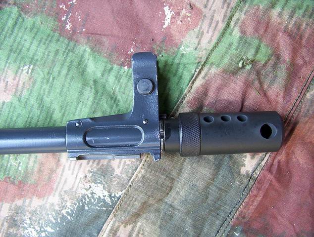 枪管上有准星/刺刀座、导气箍和下护木套箍,均用销子固定。导气孔位于枪管前上方,距枪管尾端面216毫米。枪口帽与枪口由螺纹连接,枪口有锥角。