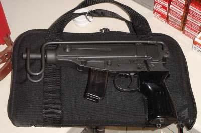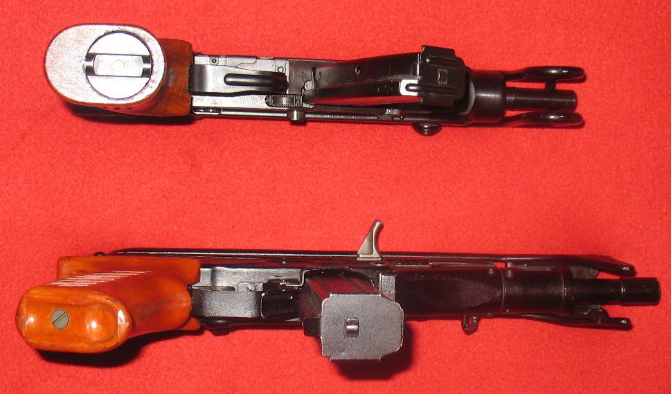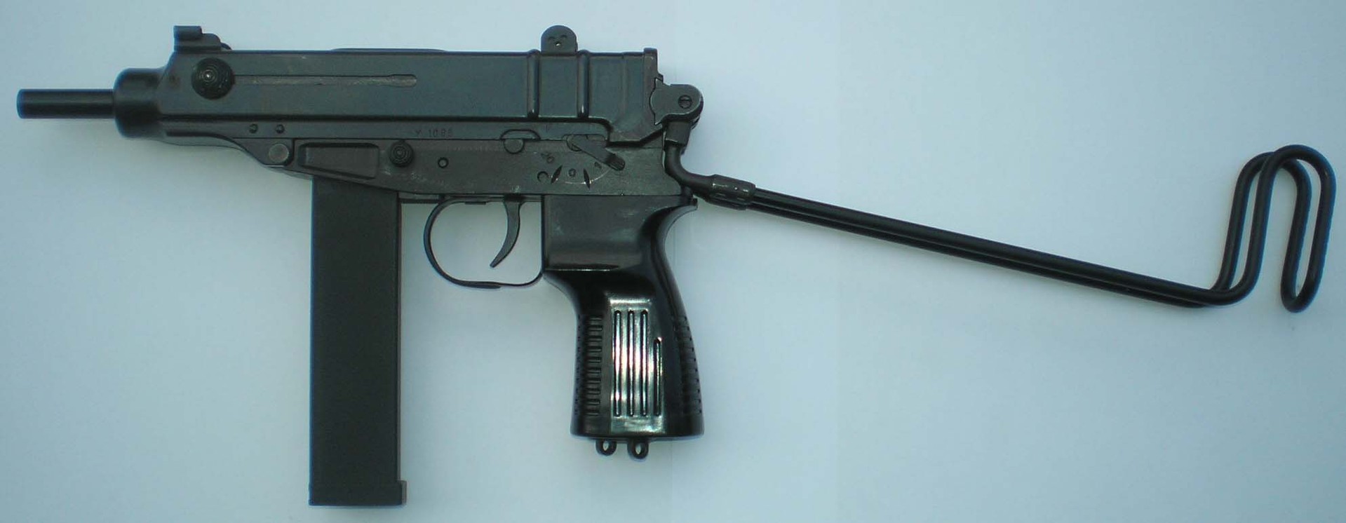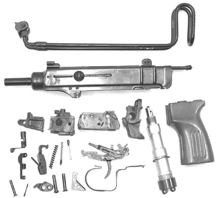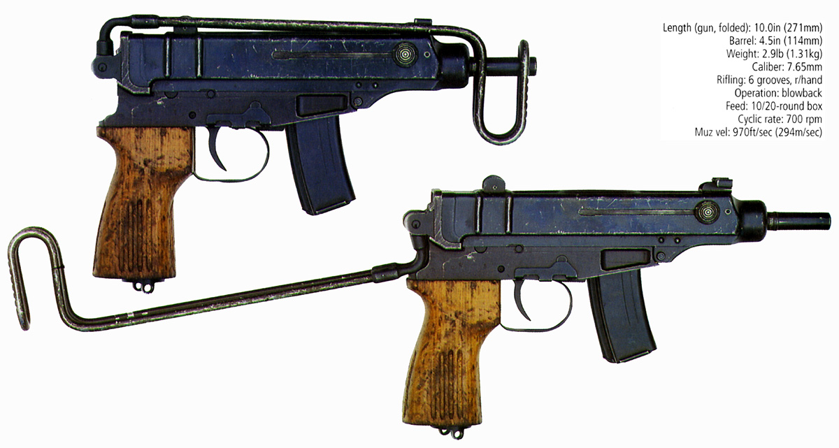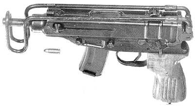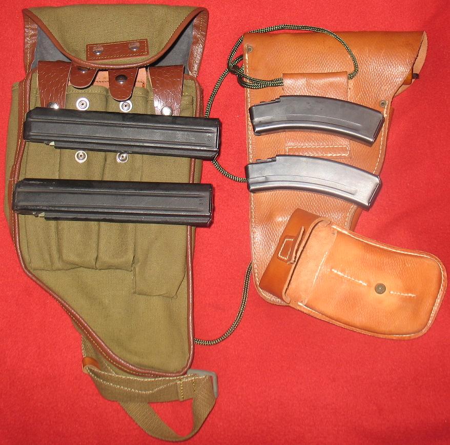 弹匣为双排,容量有10和20发两种,折叠枪托式用钢线制成。随枪通常配发一个手枪式的枪套和弹匣袋。