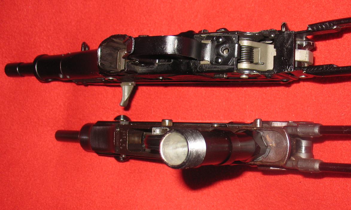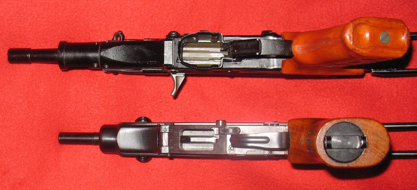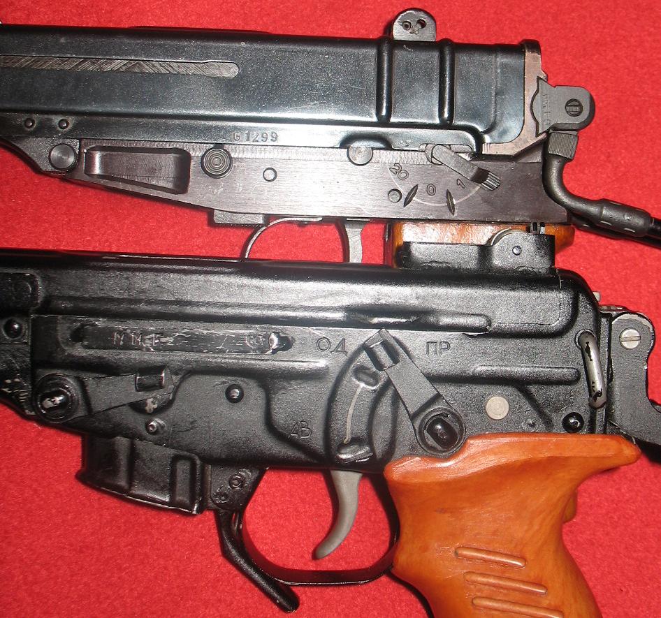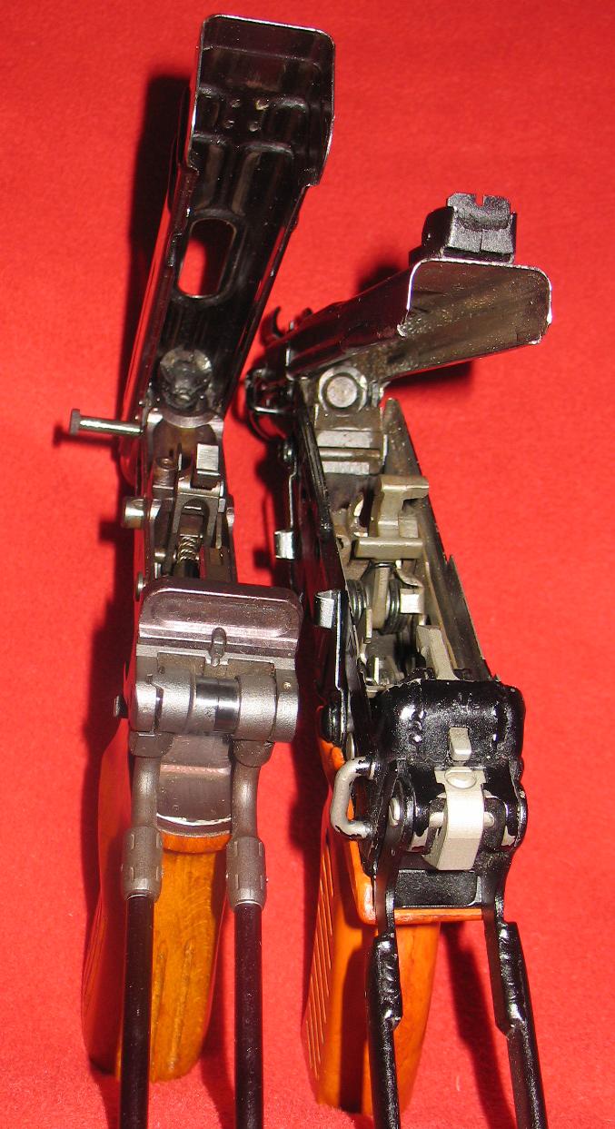 当快慢机装定于保险位置时,可起到双重保险的作用:一是将扳机锁住,二是利用扳机连杆将枪机锁住。当快慢机装定于半自动位置时,击发后枪机后座压倒击锤,击锤的辅钩与第二阻铁扣合。松开扳机,扳机连杆向前运动使第二阻铁解脱击锤,击锤的主钩随之又与第一阻铁相扣合。此时,枪便再次成待发状态,扣压扳机即可击发另一发枪弹。当快慢机装定于全自动射击位置时,快慢机轴使第二阻铁向后挂不住击锤,故击锤仅受不到位保险阻铁的控制,枪机复进到位便压倒不到位保险,使击锤解脱击发枪弹。