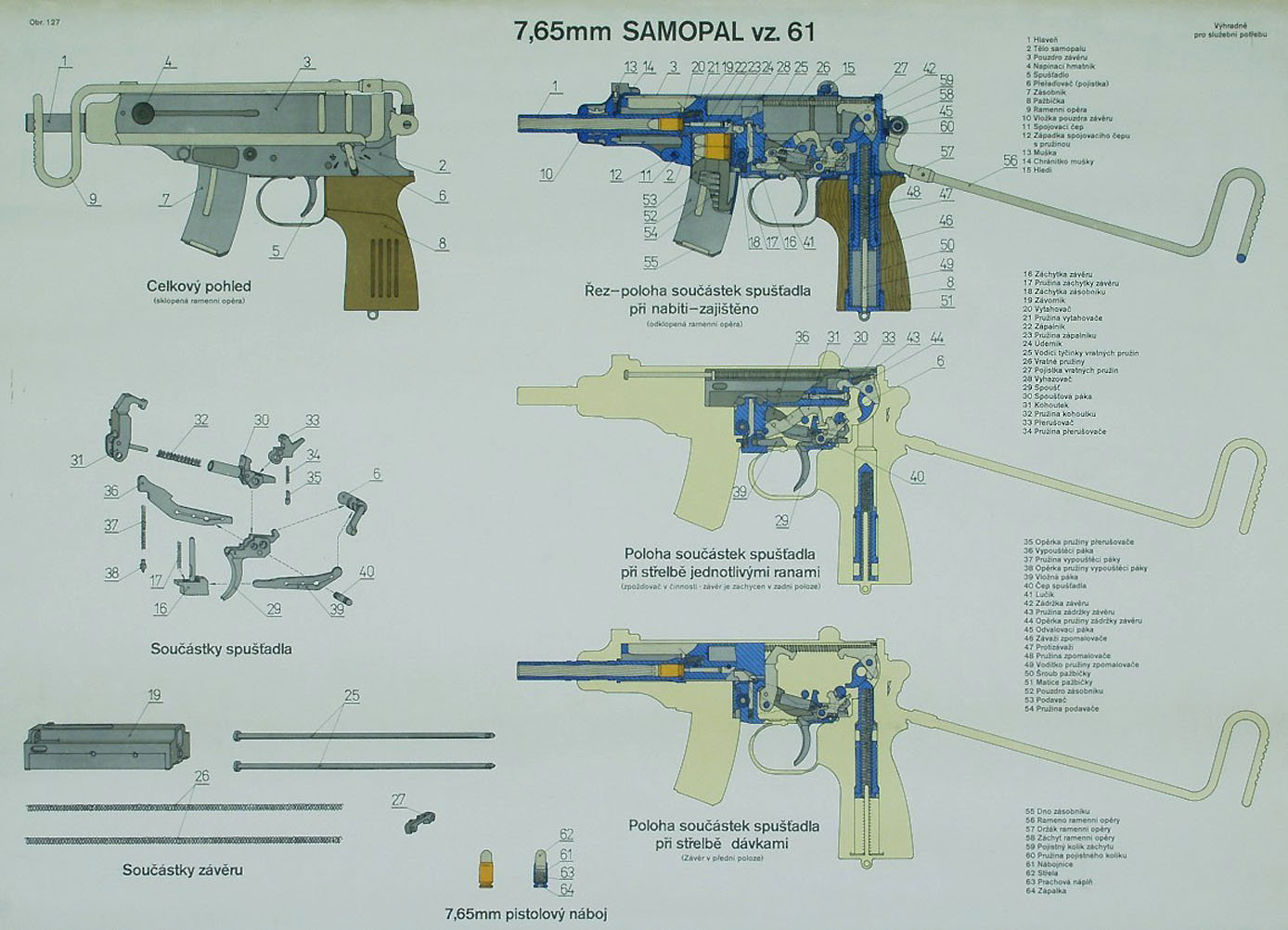 首先在1964年设计了发射9mm勃朗宁短弹(9×17mm)的SA Vz.64,然后又推出了9×18mm马卡洛夫PM手枪弹的SA Vz.65,接着又推出了9×19mm派拉贝鲁姆弹的SA Vz.68,该型号更长一些更重一些。
