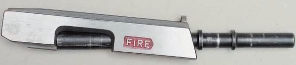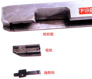 前握把打开并向后拉动,带动枪机运动并与阻铁扣合形成待击状态,此时枪机框上的“FIRE”字样会正好暴露于抛壳口上,起到提示作用,同时抛壳口仍然被枪机框封闭,起到防尘作用