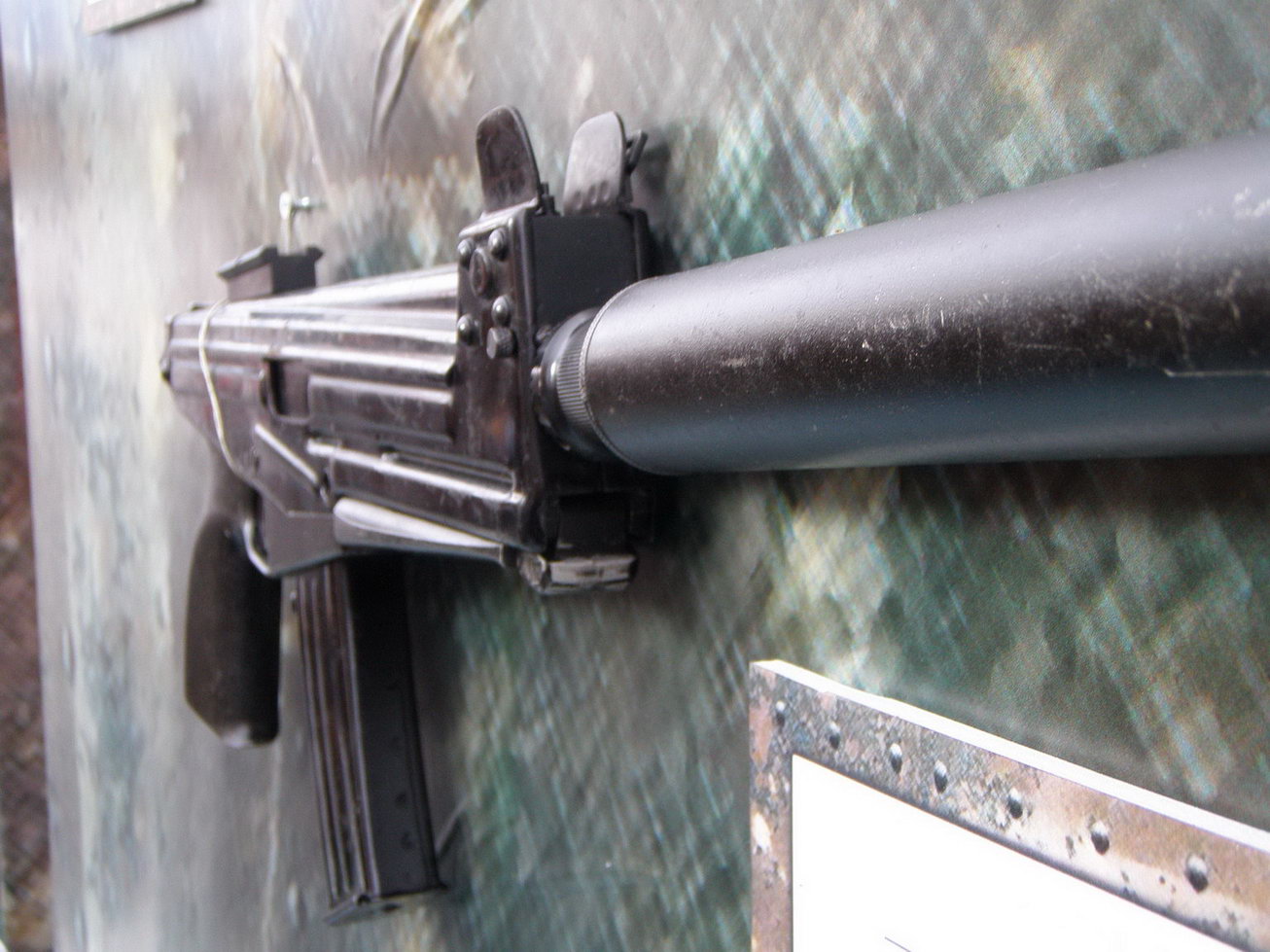 本人于09年本地警察开放日上就看到这支估计为7.62x25mm口径的411冲锋枪,虽然说明牌上莫名奇妙地写着“1949年前留存枪支”